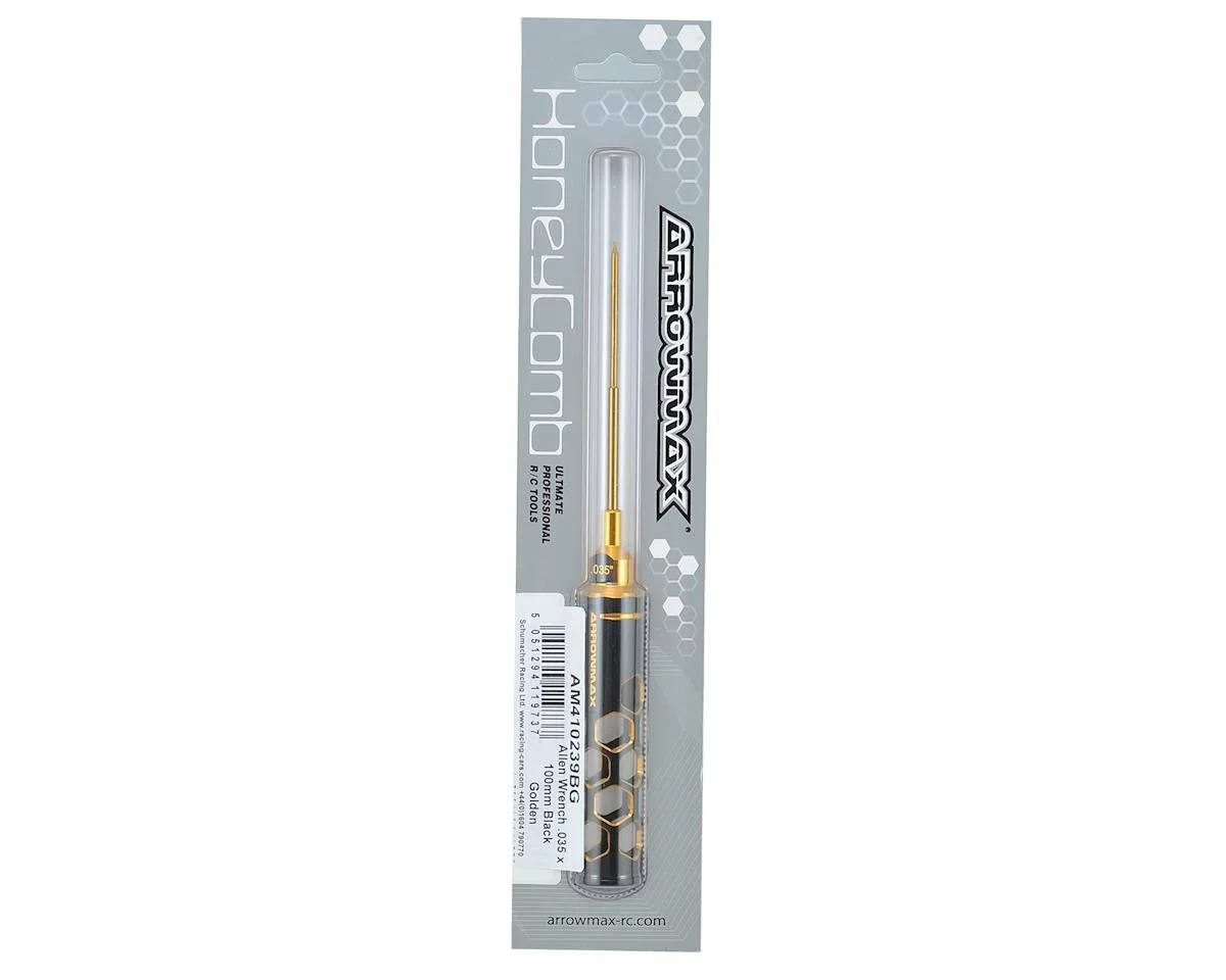 This is an Arrowmax Limited Edition 0.035″ SAE Allen Wrench. This honeycomb tool feature an eye-catching hollow honeycomb handle design with a rich black and gold color finish. Spring steel titanium nitride tip and lexan bottom cover provide a more comfortable, controllable and lighter feeling.