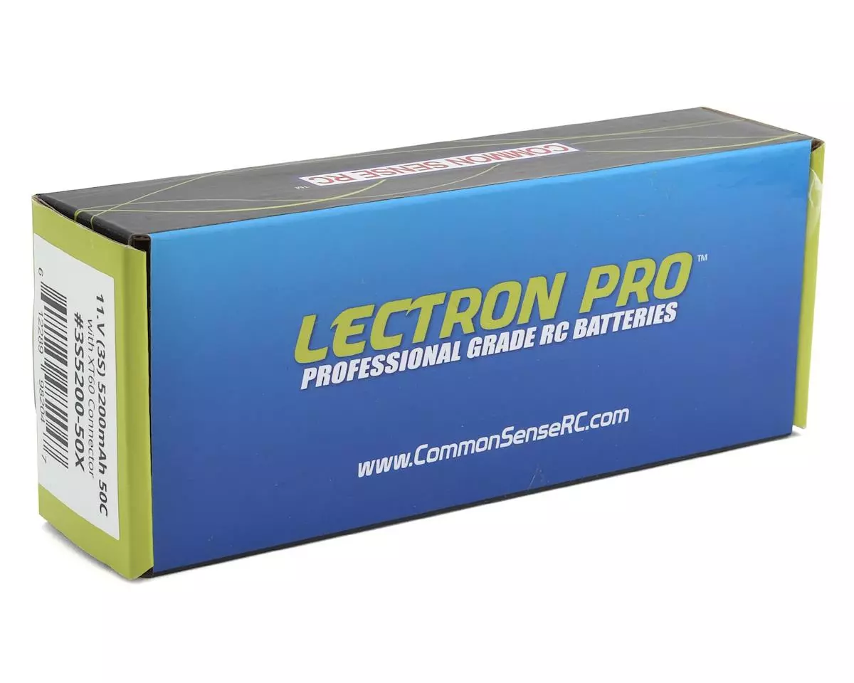 This is the Common Sense Lectron Pro 3S 50C LiPo Battery with 5200mAh capacity. Designed for guys who want to push their brushless 1/10 scale vehicles to the limit, this 3S battery lets you take full advantage of your power system. Features a huge capacity for extended runtimes, and a 50C rating for lots of power. Competitively priced, this lipo is a great combination of features and value.