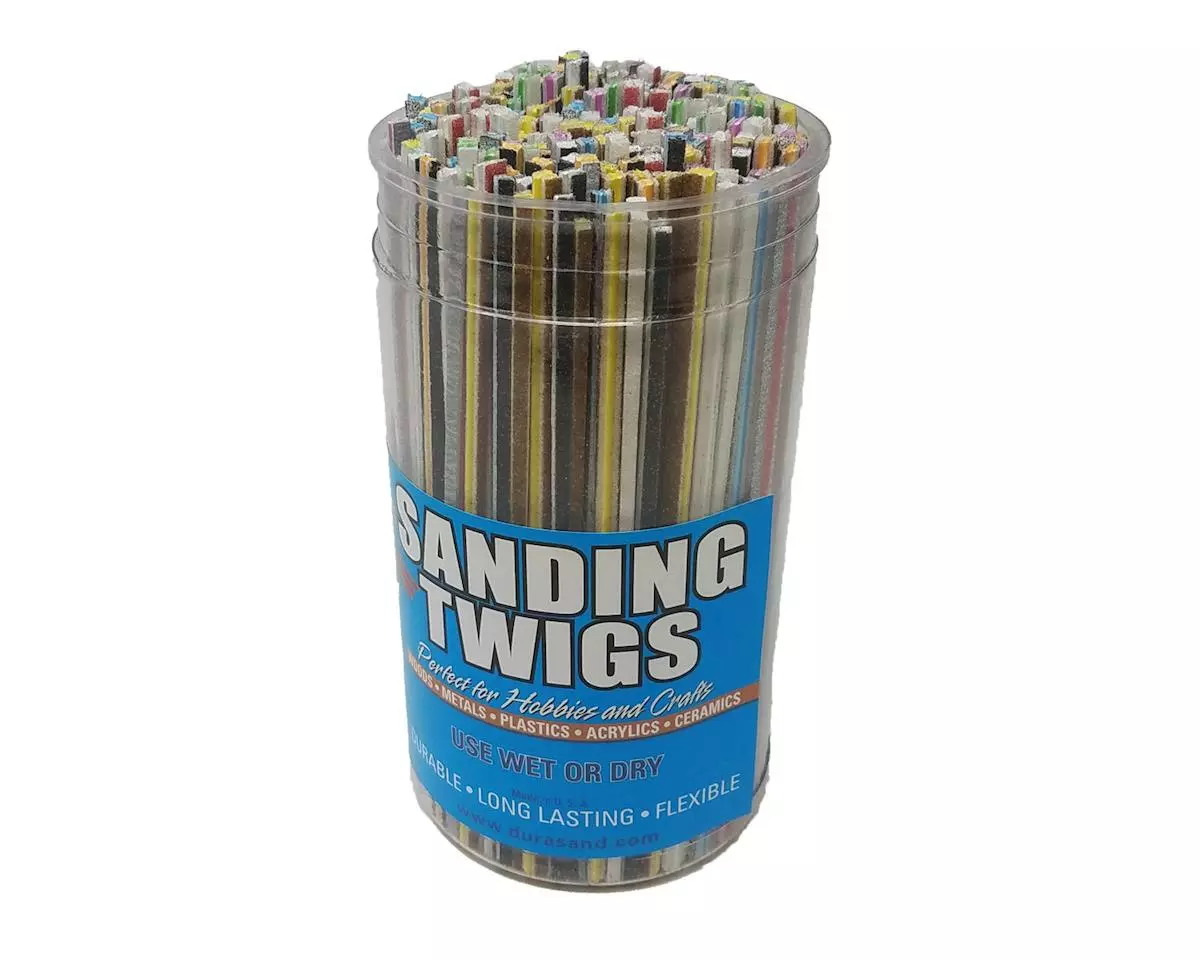 Sold in a clear plastic bucket consisting of 300 assorted sanding twigs. DuraSand has developed two products specifically for the hobbyist. The items are called sanding twigs and sanding sticks. Both the twigs and the sticks are very popular items. They are used to get into hard to reach places. They are perfect to make those last finishing touches on that project that you have been working so long to perfect. They are finishing tools that can make the necessary adjustments to turn that flaw into flawless. The grit sizes are mixed for the twigs and the sticks come with coarse, medium, and fine.