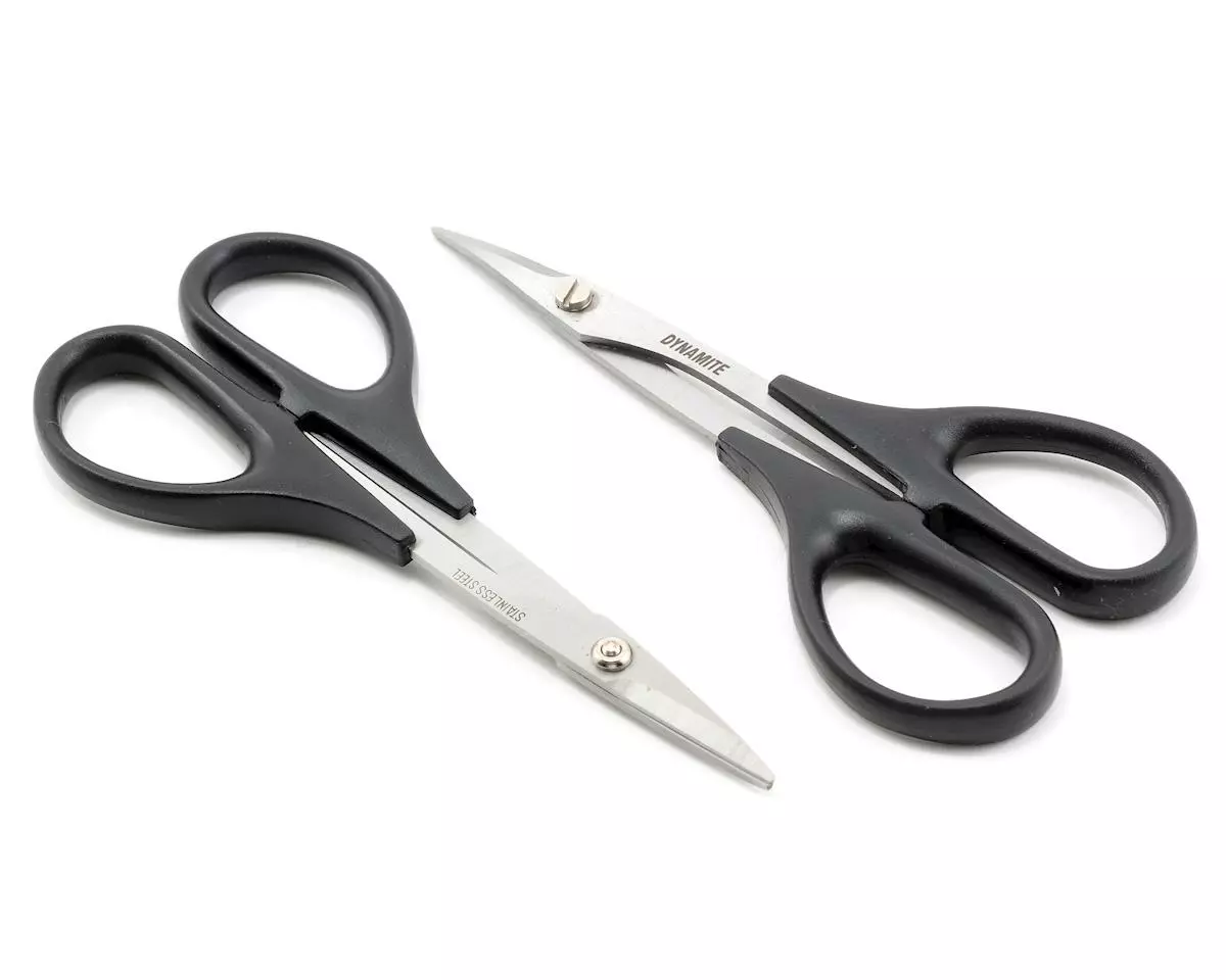 This is a set of two Dynamite Lexan Scissors. One set is curved, for cutting curves like wheel well openings, and body radii. The other set is straight, for cutting straight lines. Both sets of scissors are intended to be used for cutting lexan plastic.