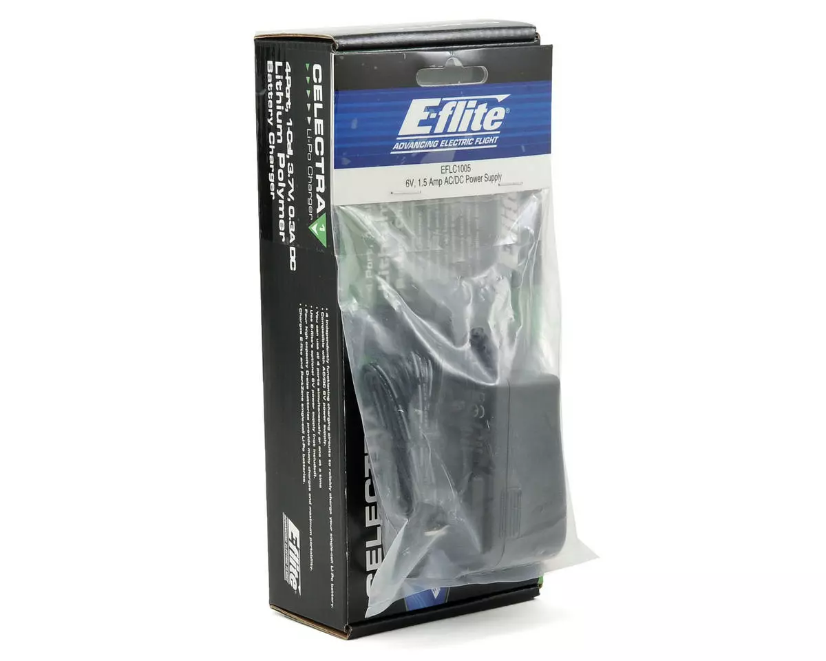 This is the E-flite Celectra 4-Port Charger Combo with AC Adapter. There’s no better choice for charging the 1-cell batteries utilized by ParkZone’s Vapor™, Ember™, Ember 2 and Sukhoi, and E-flite’s Blade® mCX, than the fast and efficient purpose-built Celectra™ 4-port charger. The Celectra operates off of D batteries, or at home with the convenience of E-flite’s AC to 6VDC 1.5A Power Supply.