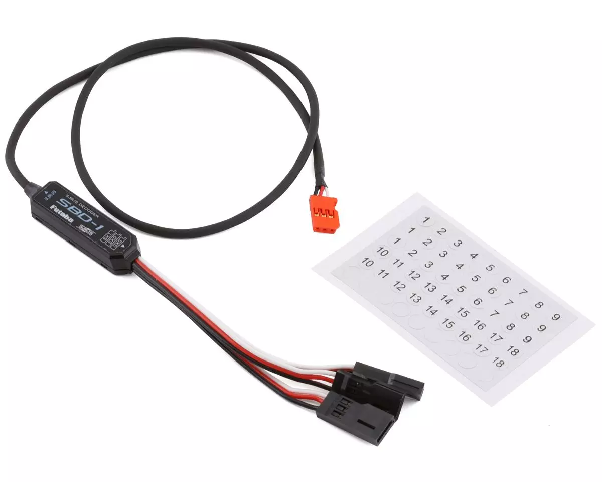 This is the Futaba SBD-1 23.6″ S.Bus Decoder. The SBD Link software is used to determine which channel each individual servo will respond to, helping to prevent mismatched servo-channel connections. Three servo outputs can be programmed to specific channels. It is compatible with standard analog and digital servos as well as Futaba programmable S.Bus servos.