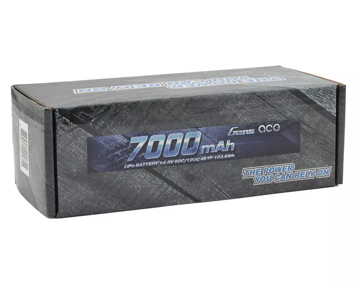 The Gens Ace 4S 60C 7000mAh Hardcase LiPo Battery Pack features a factory installed T-Style connector. This is a high-capacity, high-discharge rate that gives you the power and run-time you expect from Gens Ace LiPo batteries.
