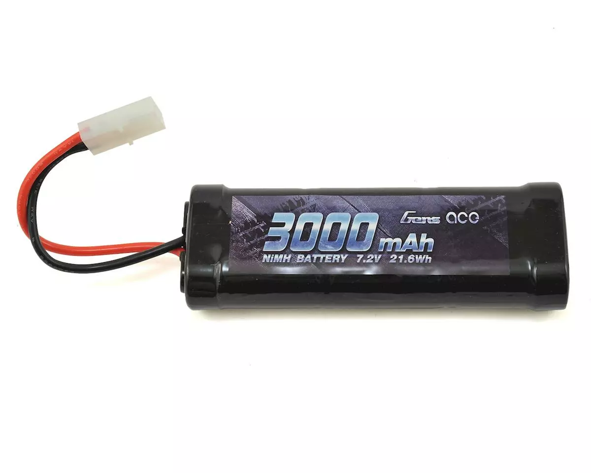 This is a Gens Ace 6-Cell, 7.2V, 3000mAh NiMH Battery Pack with Tamiya Connector. This stick pack is built using quality Sub C size 3000mAh NiMH cells and features a Tamiya connector. This pack will fit into any vehicle that uses a standard stick type battery pack. The recommended charge rate for these batteries is 1C for the best battery life and run time, and we do not recommend you charge them at more than 1C (3A Max).