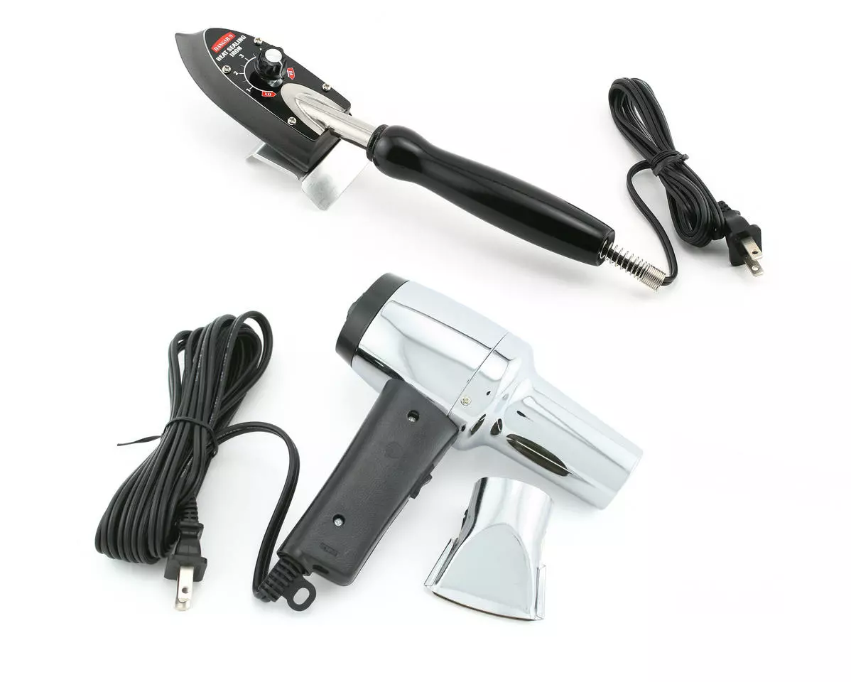 This is the Hangar 9 Heat Gun and Sealing Iron combo. The Hangar 9 Heat Gun, with 1000 watts of power, adjustable heat levels and a removable nozzle to concentrate heat where it’s needed. Rubber-coated handles ensure firm grip.The Hangar 9 Sealing Iron is a basic iron that features precise thermostatic-control up to 450º, plus contoured shoe and safety stand.