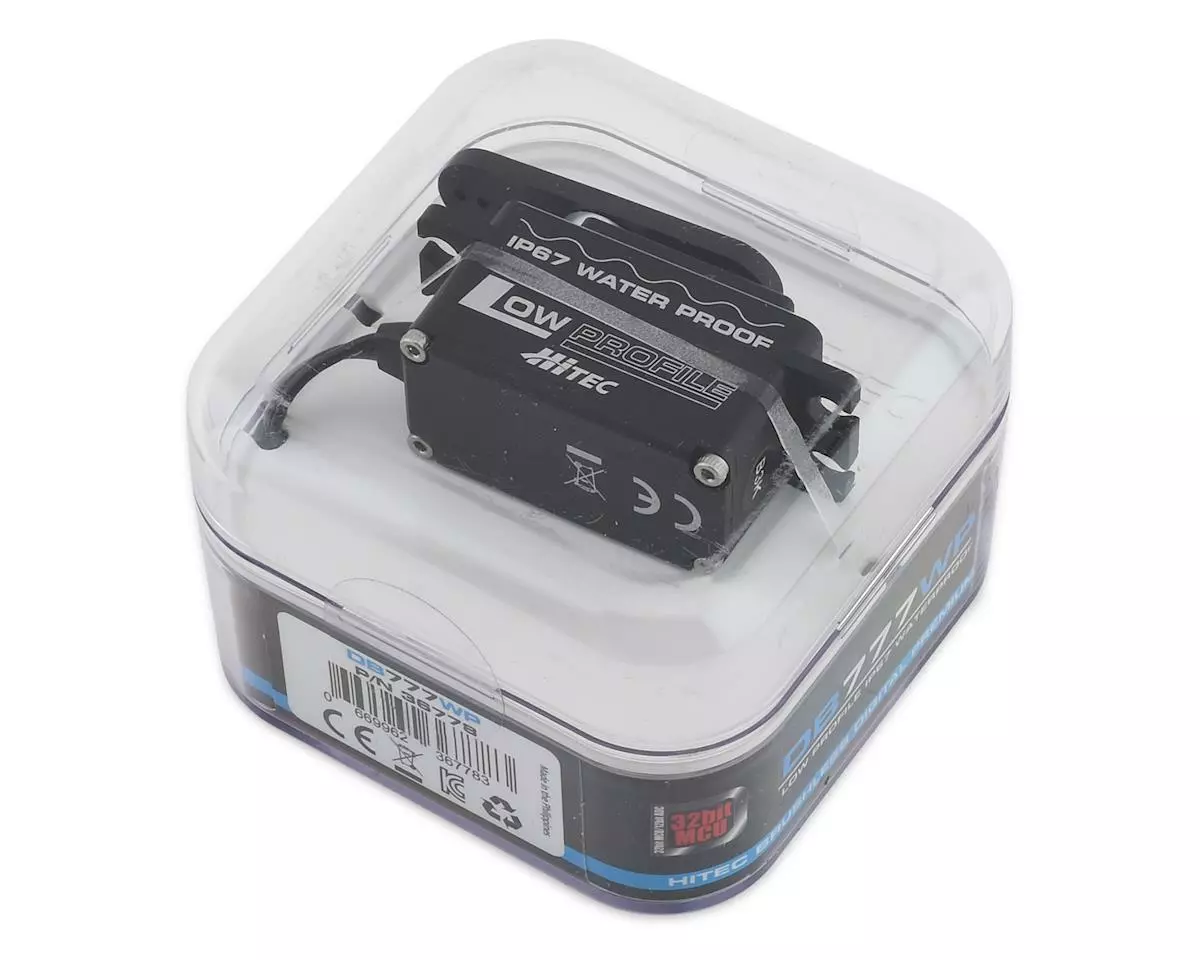 This is a Hitec High Voltage DB777WP D-Series 32-Bit MCU Low Profile Waterproof Servo, a high-performance, low profile servo designed with a full metal, IP-67 rated waterproof case. This advanced, programmable servo is a dependably fast, low profile option for 1/10 buggy and touring car drivers. This servo is powered by our 32-bit MCU (Microcontroller Unit) and 12-bit ADC (Analog to Digital Converter), bringing high resolution, rapid response, and patented Smart Sense technology to kick your ride into top gear.