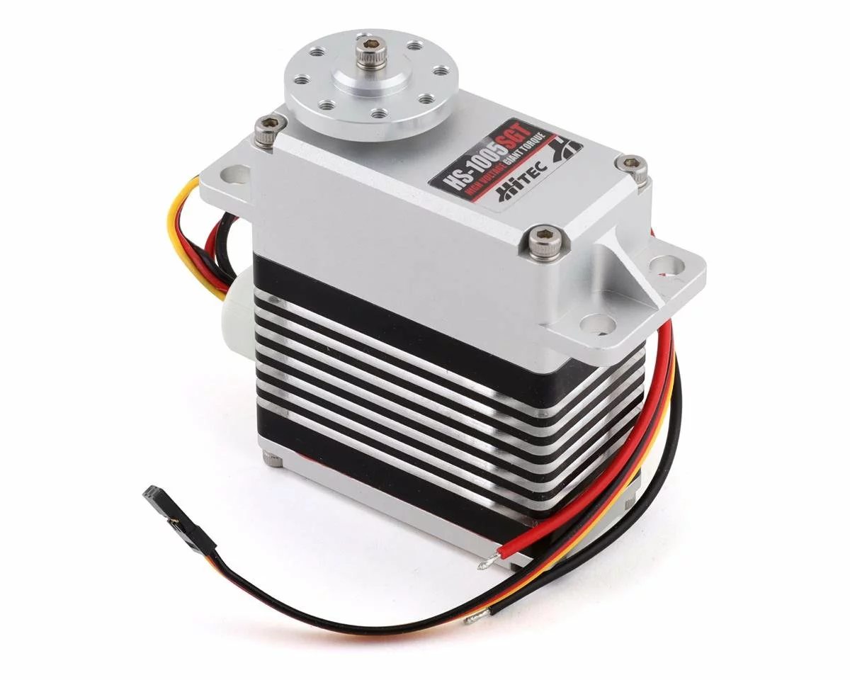 The Hitec HS-1005SGT Industrial Type Full Metal Giant Scale Servo is an ultra heavy duty, giant scale servo option that delivers digital precision and high voltage punch to your most demanding projects. Designed with an all-aluminum, EMI-shielded case, solid steel gears and non-programmable digital circuitry, this powerhouse servo can tackle the most extreme 1/5th scale vehicle stunts and giant scale aerobatic maneuvers in addition to the industrial applications that inspired its original design. Capable of operating on 14.8 volts, the HS-1005SGT is the ultimate in power and durability.