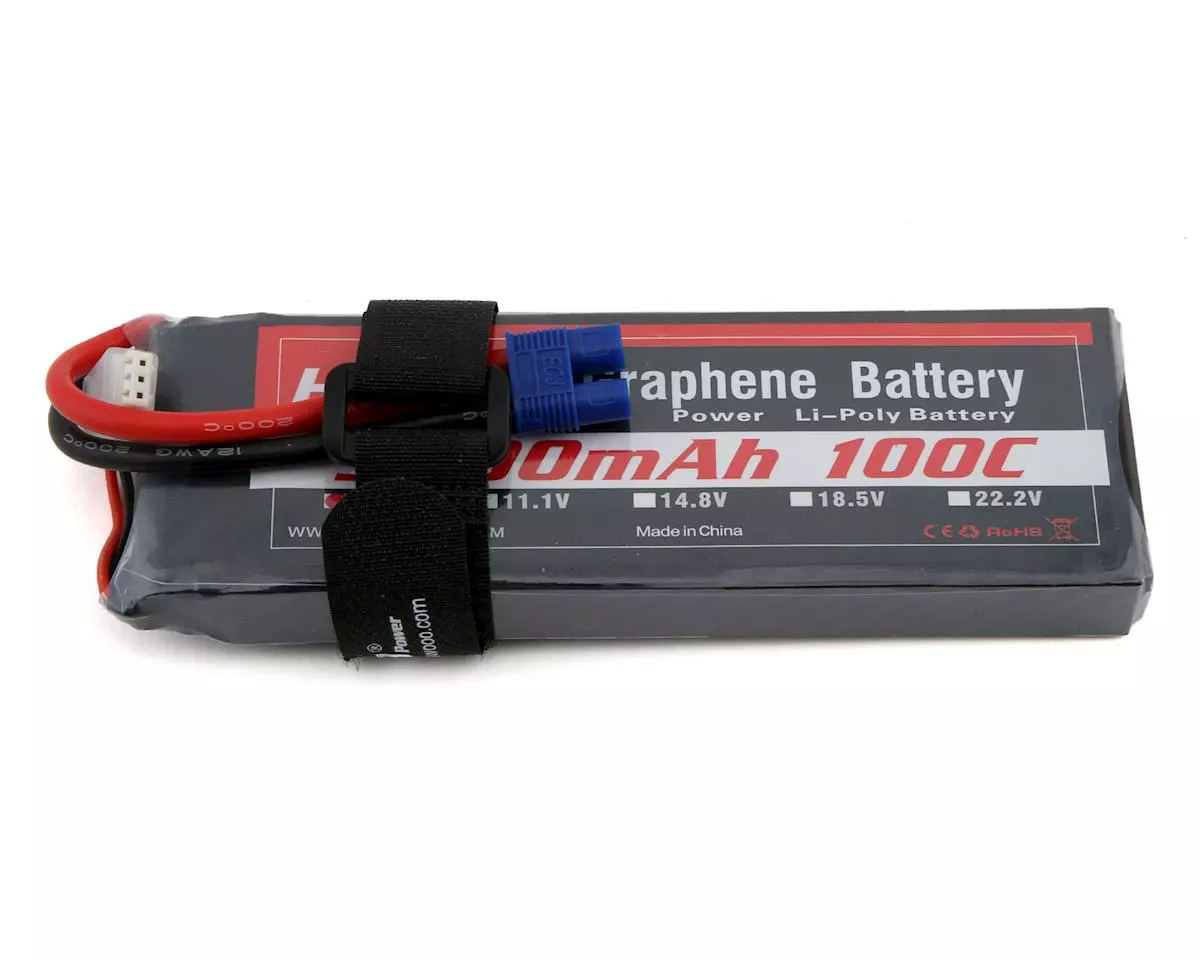 This is an HRB 2S 100C 5000mAh Graphene LiPo Battery, made from a lithium graphene composite material. Added graphene material provides an increased discharge rate, capacity and lifespan. With the added graphene, batteries provide improved performance through lower internal resistance, and operate at a lower temperature.