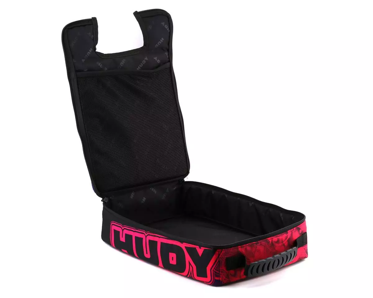 The Hudy 1/10 Off-Road Car Bag helps to protect one of the single most important pieces of your racing equipment – the car itself. Your valuable race chassis deserves all the protection it can get when traveling back and forth from races and this semi rigid bag helps keep your car safe. The interior of the bag measures approximately 14.5×10.2×3″, providing enough space for a car with body attached, and features an interior pocket in the lid that can be used for things like setup sheets or other miscellaneous small accessories.Â