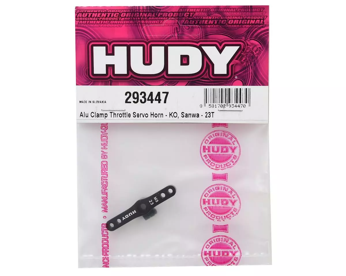 The Hudy Aluminum Clamping 2 Hole Servo Horn is a CNC-machined throttle servo horn. The clamp design allows easy assembly and maximum strength to eliminate the flex associated with composite servo horns. Ultra-strong construction provides very long life and durability. Drilled and tapped for 3mm-linkage hardware. Machined from strong Swiss 7075 T6 aluminum and black coated. Laser engraved for easy identification. Package includes one 23 tooth double arm clamping servo horn.