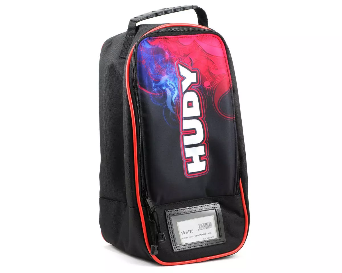 This is the Hudy Exclusive Edition Large Transmitter Bag. With your transmitter being one of the single most important pieces of your racing equipment, it deserves all the protection it can get when traveling to and from races. To keep your transmitter safe and protected, use the stylish HUDY Exclusive Transmitter Bag.