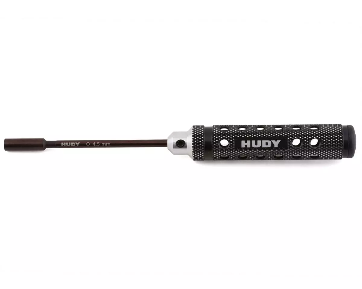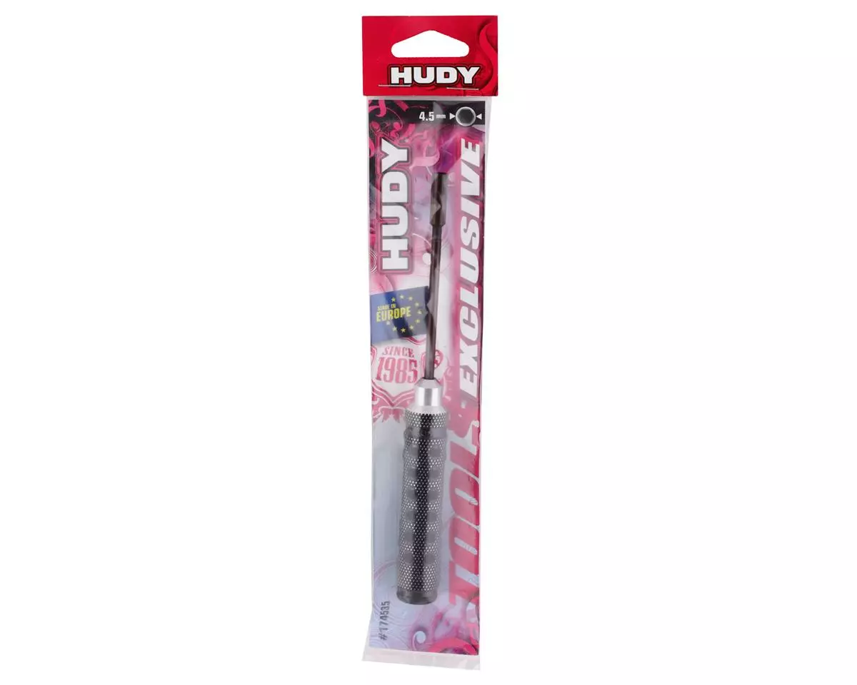 This is the Hudy Limited Edition 4.5mm Socket Driver. Featuring a super-lightweight CNC-machined Swiss 7075 T6 aluminum handle with a diamond pattern surface for unsurpassed grip. The handle includes a black plastic cap press fit into the handle end. Optional color-coded plastic caps (violet, red, blue) are available to customize the tools to your specifications.