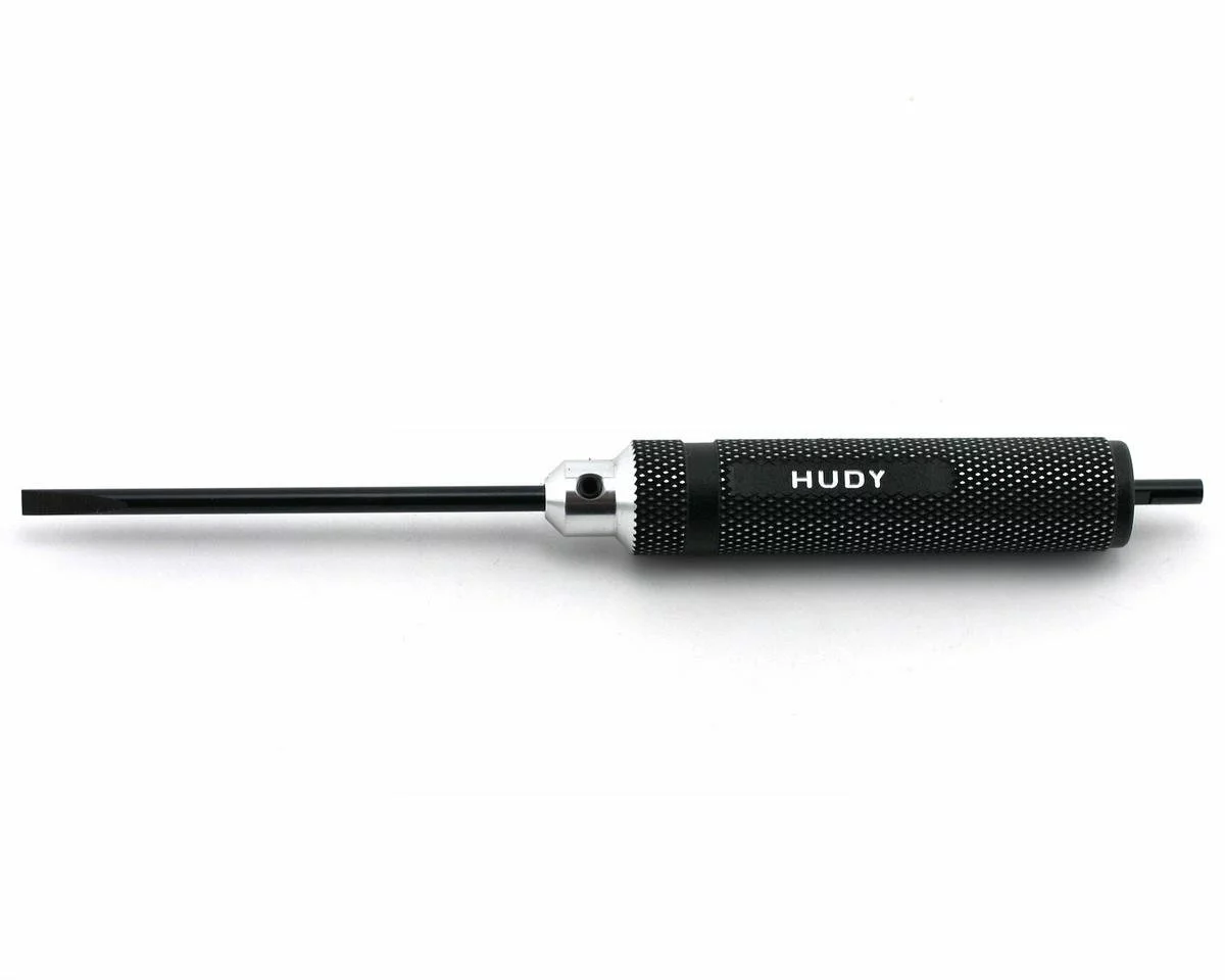 This is the 4.0mm long slotted screwdriver for engine adjustment from Hudy. Hudy proudly presents its line of Ultimate Professional R/C Tools. Our engineers have designed a perfect-fit, ultra-lightweight tool that offers exceptional torque, comfortable use, and long life. All HUDY products are solely developed and designed by HUDY, the leader in innovation and design. All tools are manufactured from highest-quality materials for unmatched strength and durability. Special care is taken through production to ensure that each product is 100% perfect, and ready to use right out of the box. Total quality management is of prime importance through design to final production, and the result is superior, professional quality tools that are second to none.