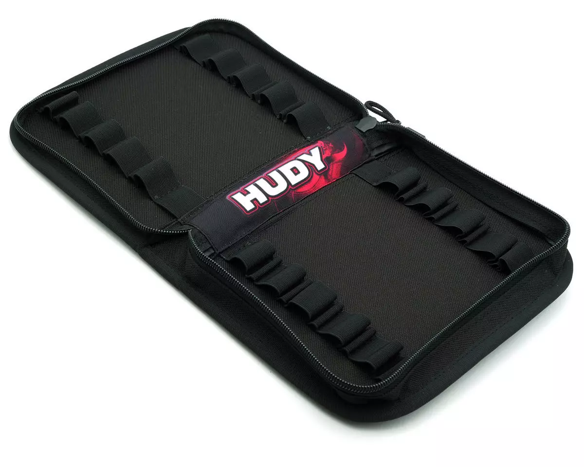 This is the Hudy RC Small Tool Bag. This premium-quality exclusive compact tool bag with a super-modern look is cool, stylish and features full-color graphics around the bag. Made with the typical HUDY high-quality European materials and craftsmanship, the small size is ideal for carrying your RC tools and accessories.
