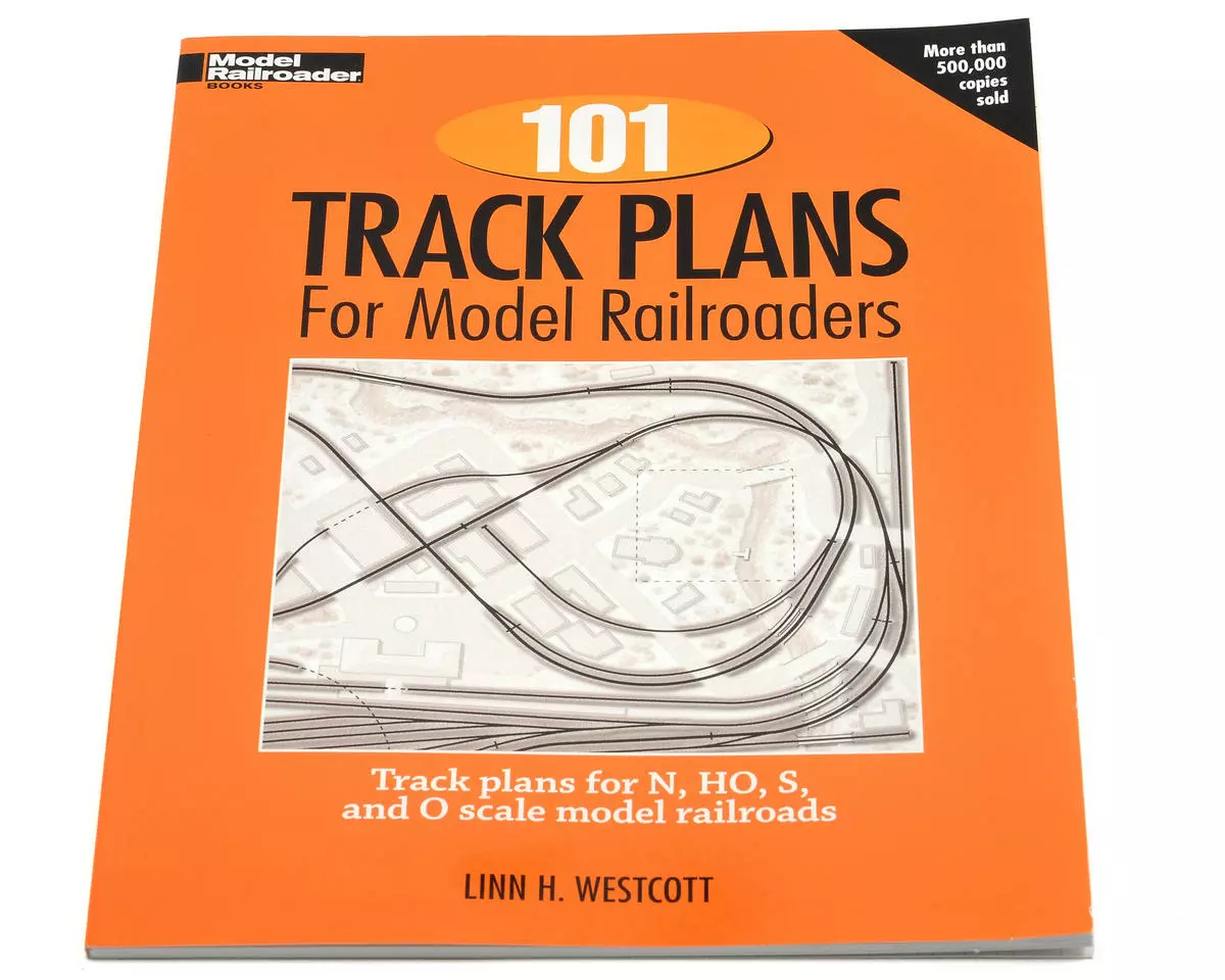 This is 101 Track Plans For Model Railroaders, from Kalmbach Publishing. This book was originally printed in 1956 and is considered by many to be a must have book for any railroad enthusiast. This book will offer a lot of insight into the history of the model railroad hobby and features easy-to-use plans in every size, and shape, from tiny card-table layouts to giant garage-size railroads. Demonstrates how to design a railroad to fit any space and explains how to convert plans to N, HO, S, and O scales.