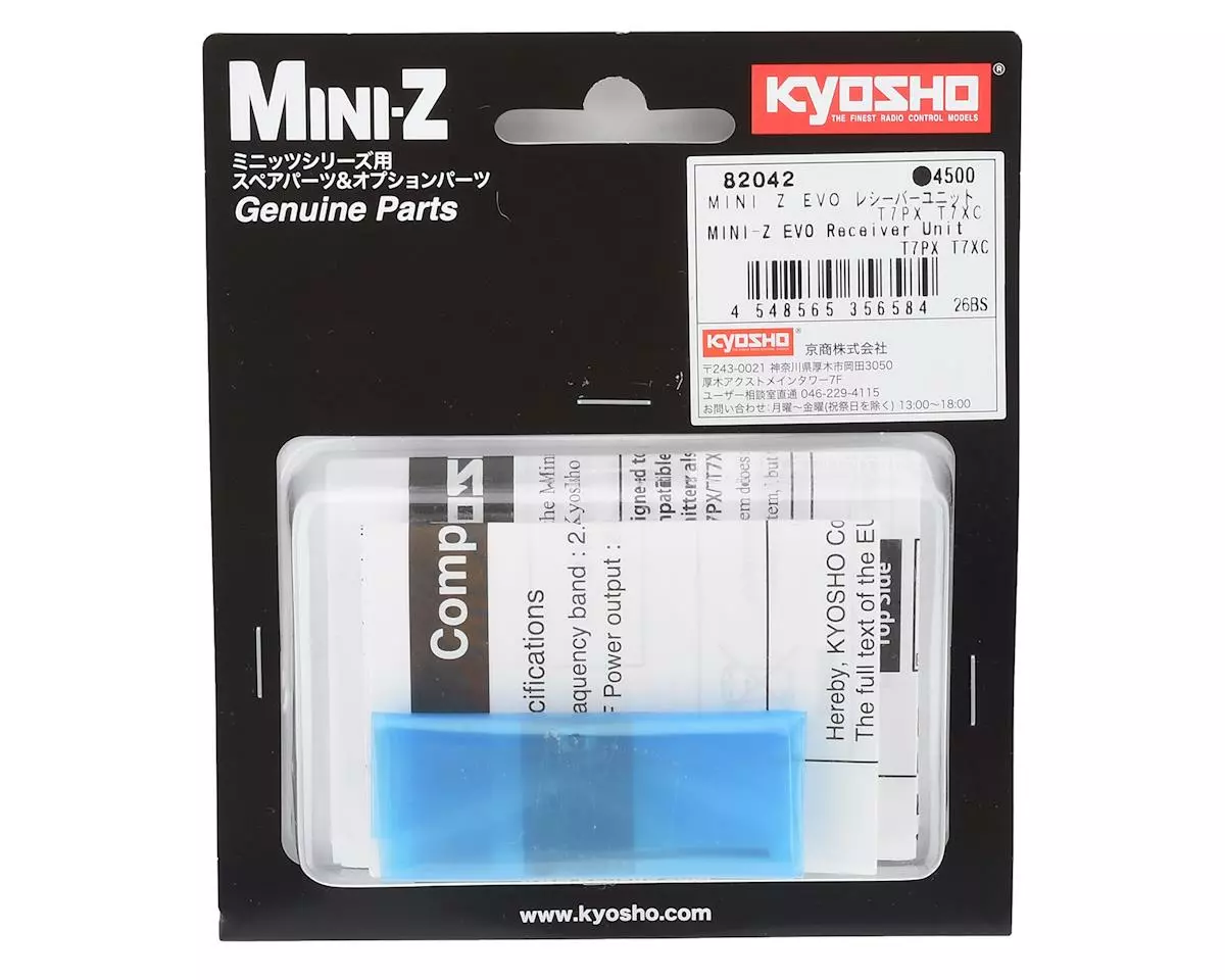 This is a replacement Kyosho Mini-Z EVO Receiver Unit, intended for use with the MINI-Z EVO chassis set ups using Futaba T7PX and T7XC transmitters.