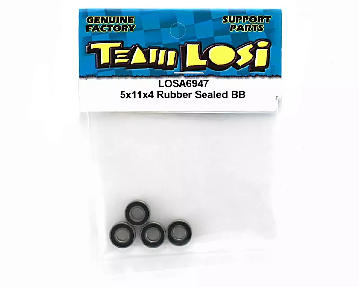 This is a pack of four 5x11x4 rubber sealed ball bearings for the Losi 8IGHT racing buggy. These bearings are used with the differential outdrive assemblies.