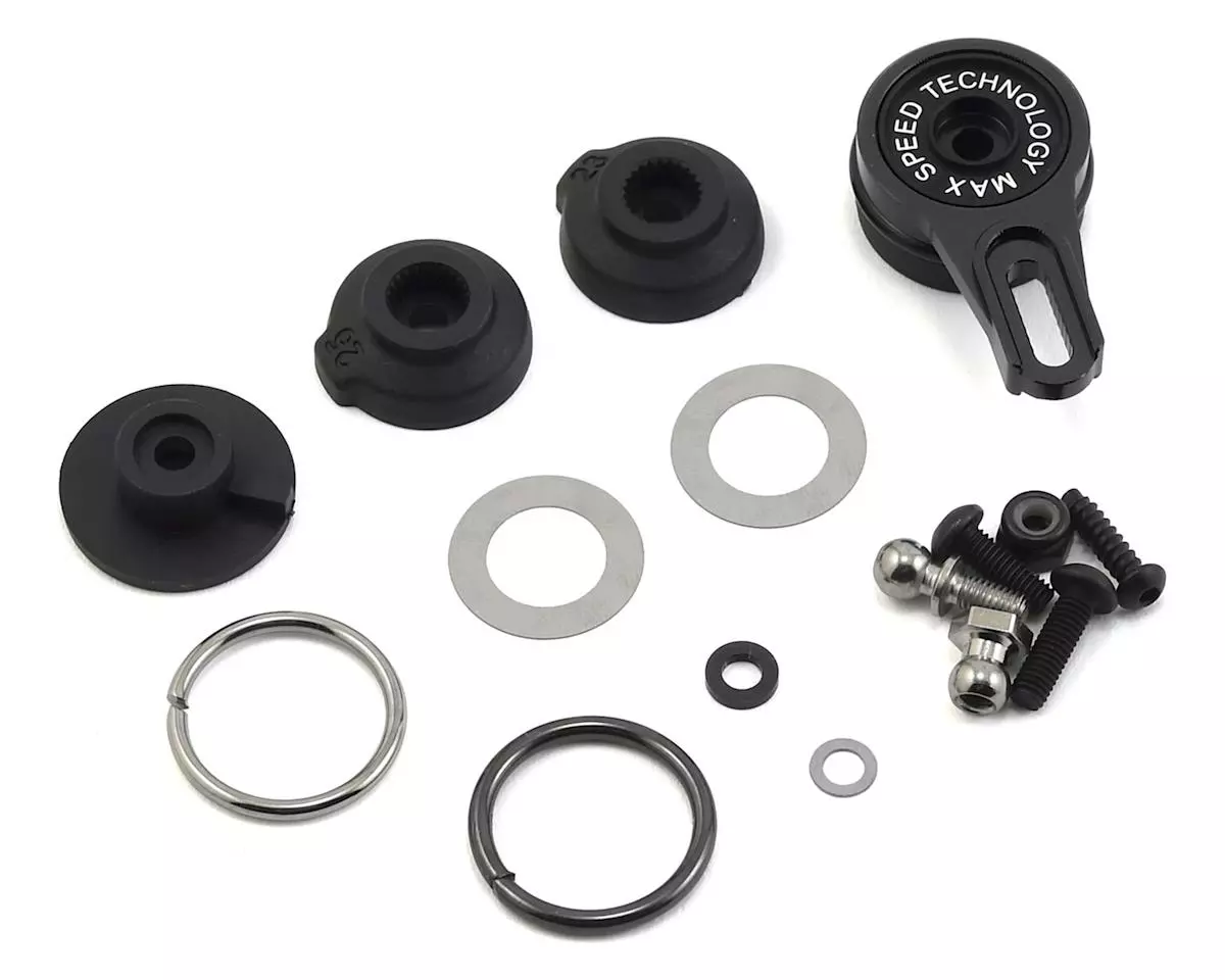 The MST Aluminum Adjustable Servo Saver is a great option for a variety of applications. This servo saver includes two output inserts for 23T and 25T servos, and three springs (one installed) to allow you to adjust the breakaway force. Plus, the servo horn provides eight positions for the pivotball mount so you can tune the feel of the steering to suit your preference. Package includes all the parts needed for installation in most applications.