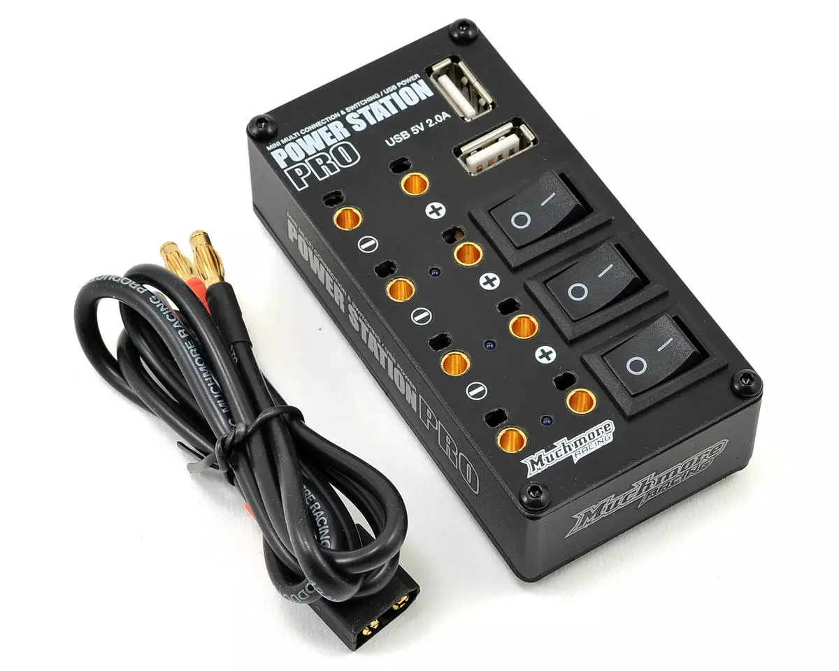 This is the Muchmore Power Station Pro Multi-Distributor Box. One of the world’s smallest multi-port distributors, the Power Station Pro features four output ports and two 5V 2A USB ports that support Smart phones and other devices.