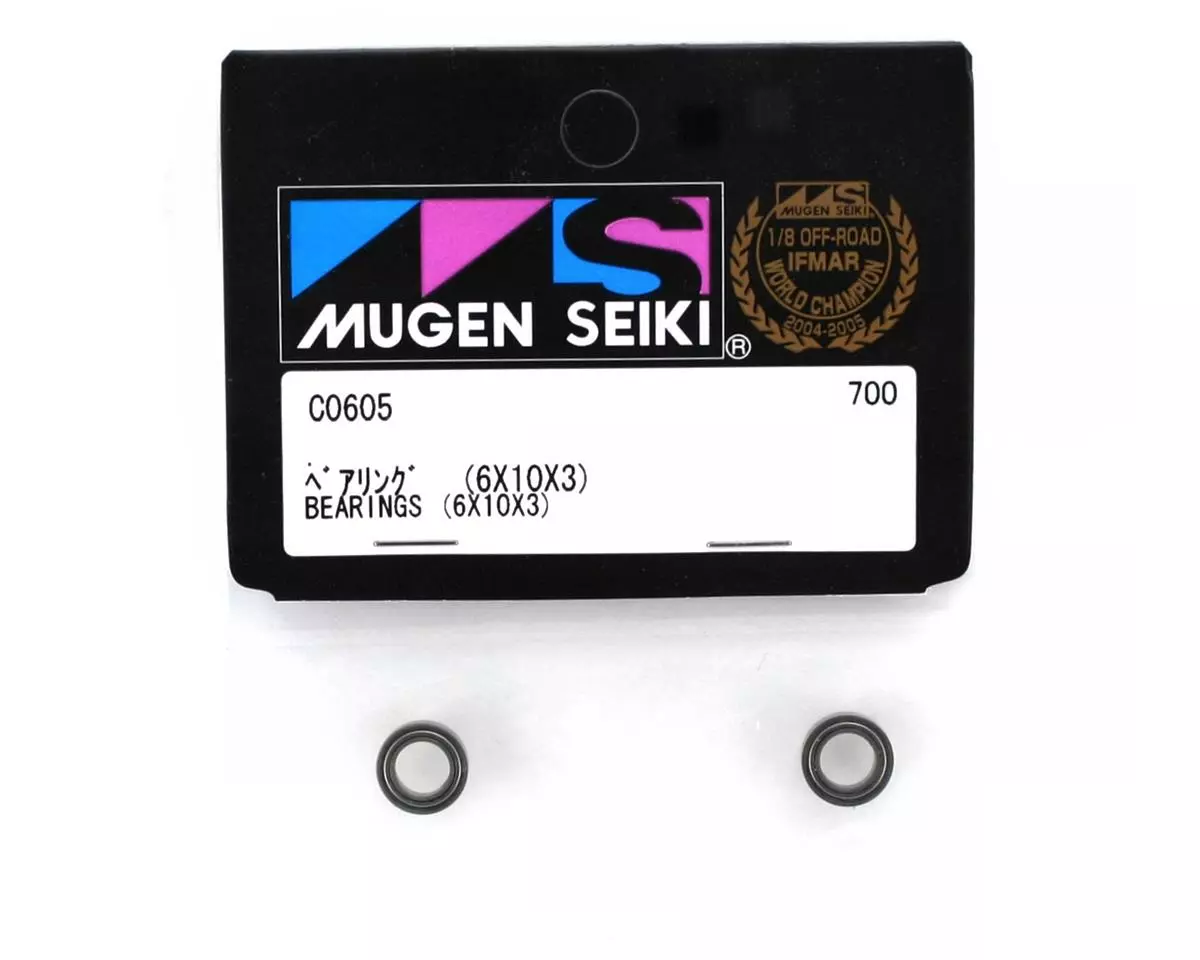 This is a pack of two replacement 6x10x3 metal shielded steering post bearings for the Mugen MBX5 buggy and MBX5T truggy. These 6x10x3mm metal shielded bearings are the standard bearing for the 1/8th scale buggy steering posts.