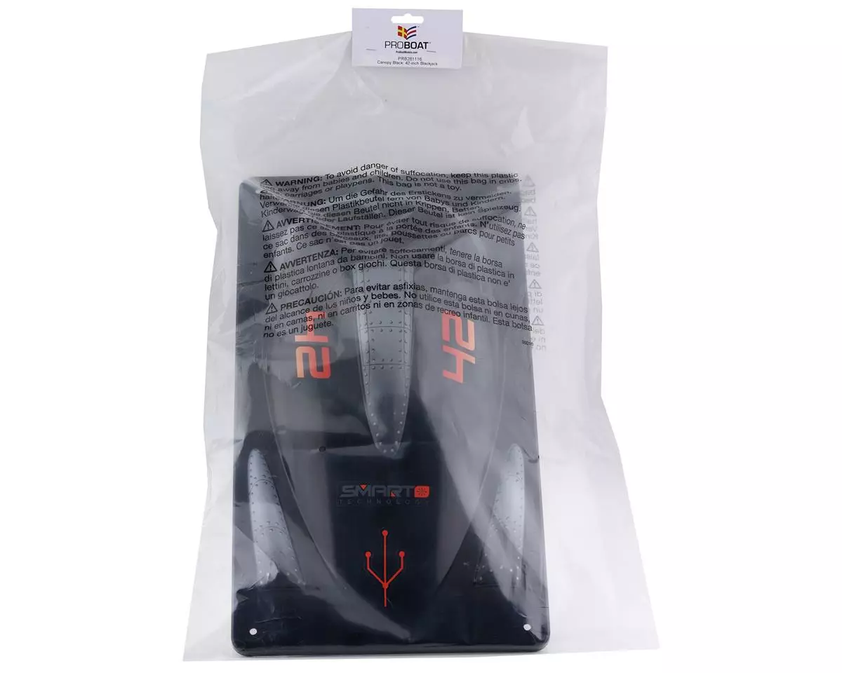 Pro Boat Blackjack 42 Canopy. This replacement canopy is intended for the Pro Boat Blackjack 42. Package includes one canopy with decals.