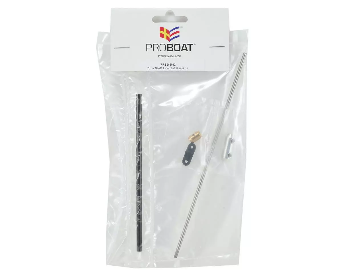 This is a replacement Pro Boat Recoil 17 Drive Shaft & Liner Set. Package includes drive shaft, motor coupling, prop drive dog, drive shaft brace, stuffing tube and liner tube.