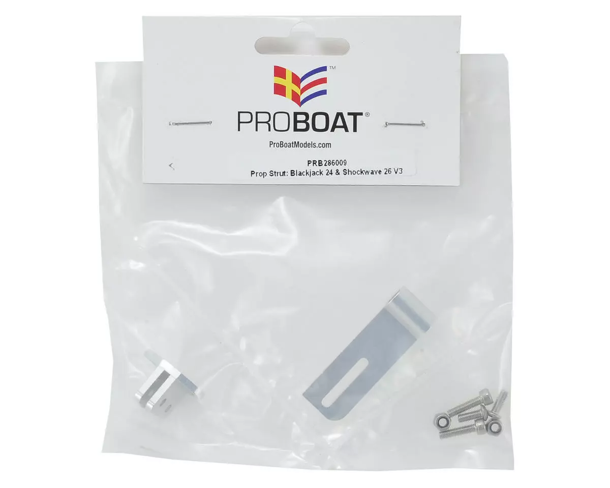 This is a replacement ProBoat Prop Strut, intended for use with the Blackjack 24 and Shockwave 26 V3. Package includes hardware.