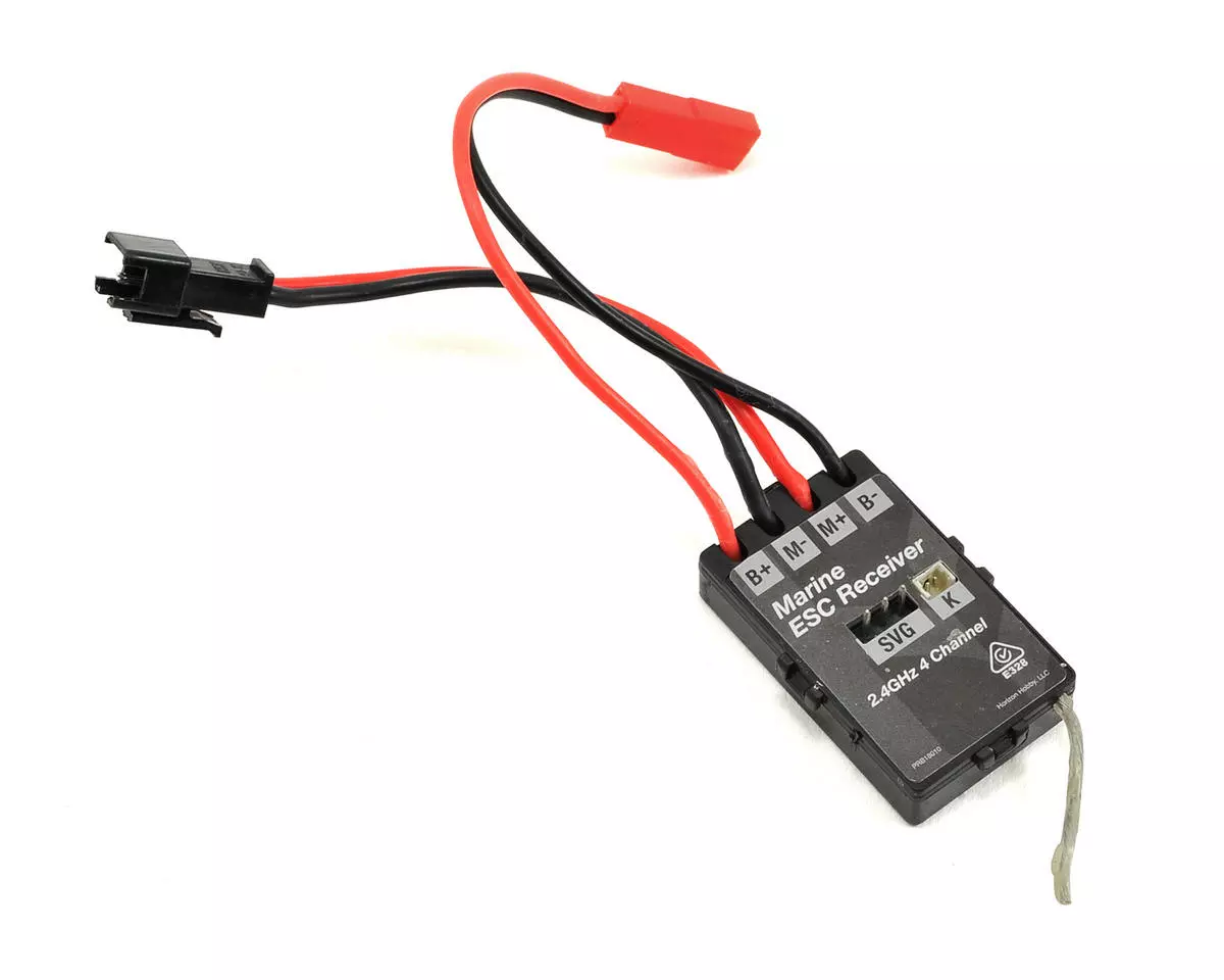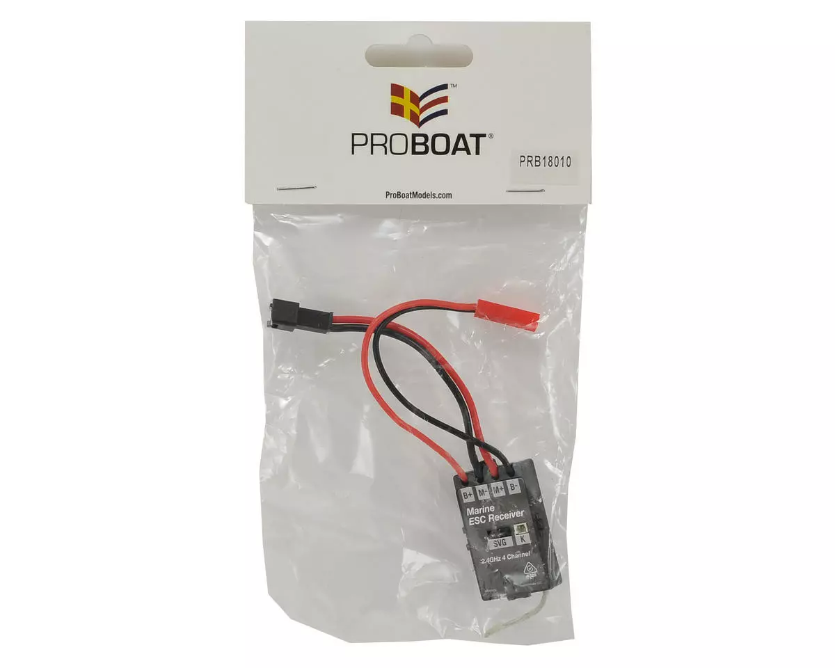 Pro Boat React 9 ESC/Receiver. This is the replacement two in one ESC/Receiver unit. Package includes brushed motor ESC/Receiver with factory installed connectors.