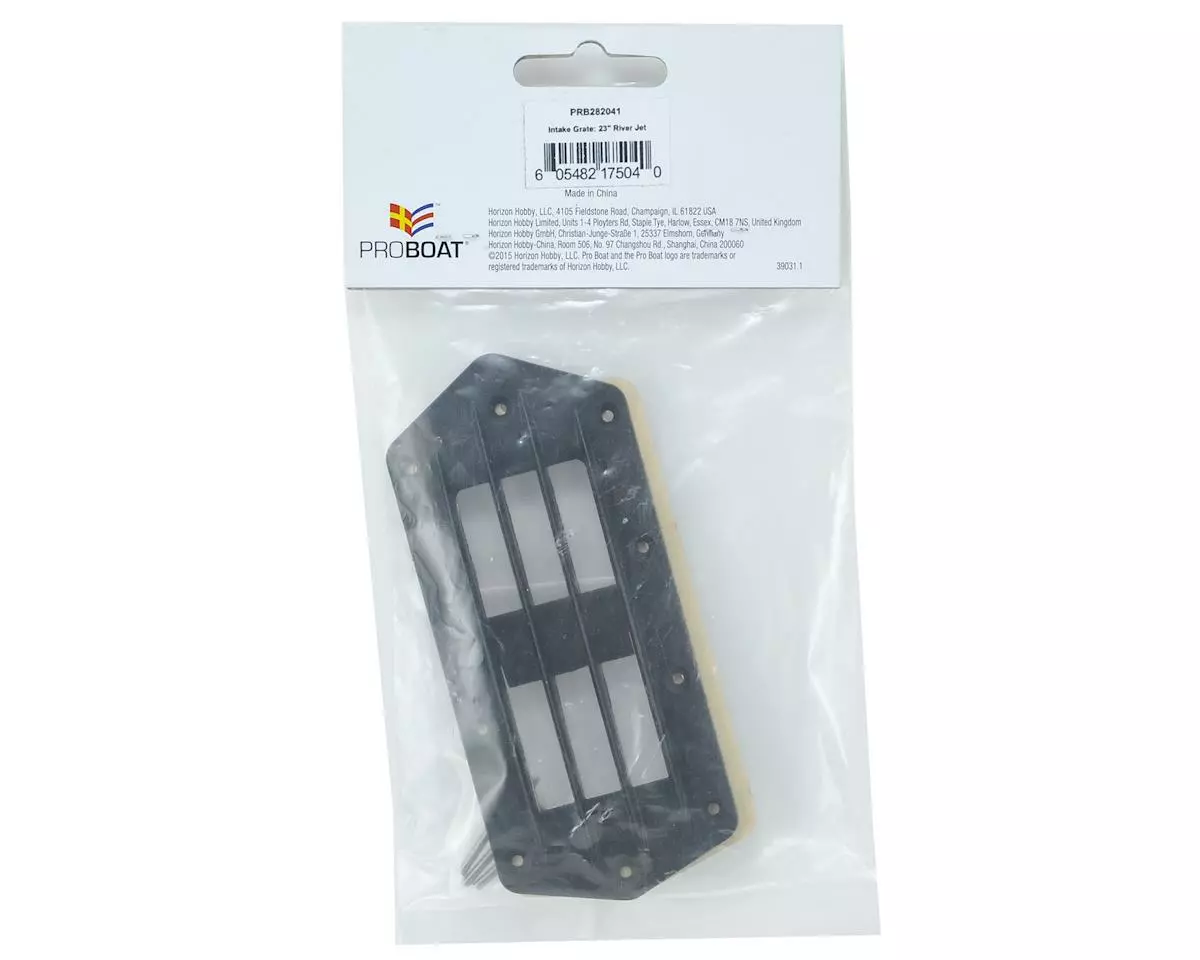 This is a replacement Pro Boat Jet Pump Intake Grate for use with the River Jet 23″ Boat. Package includes grate, foam pad and hardware.Â