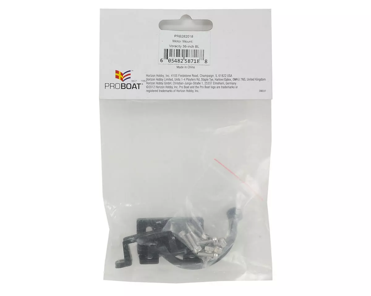 Pro Boat Voracity 36 Motor Mount. Package includes replacement motor mount components and hardware.