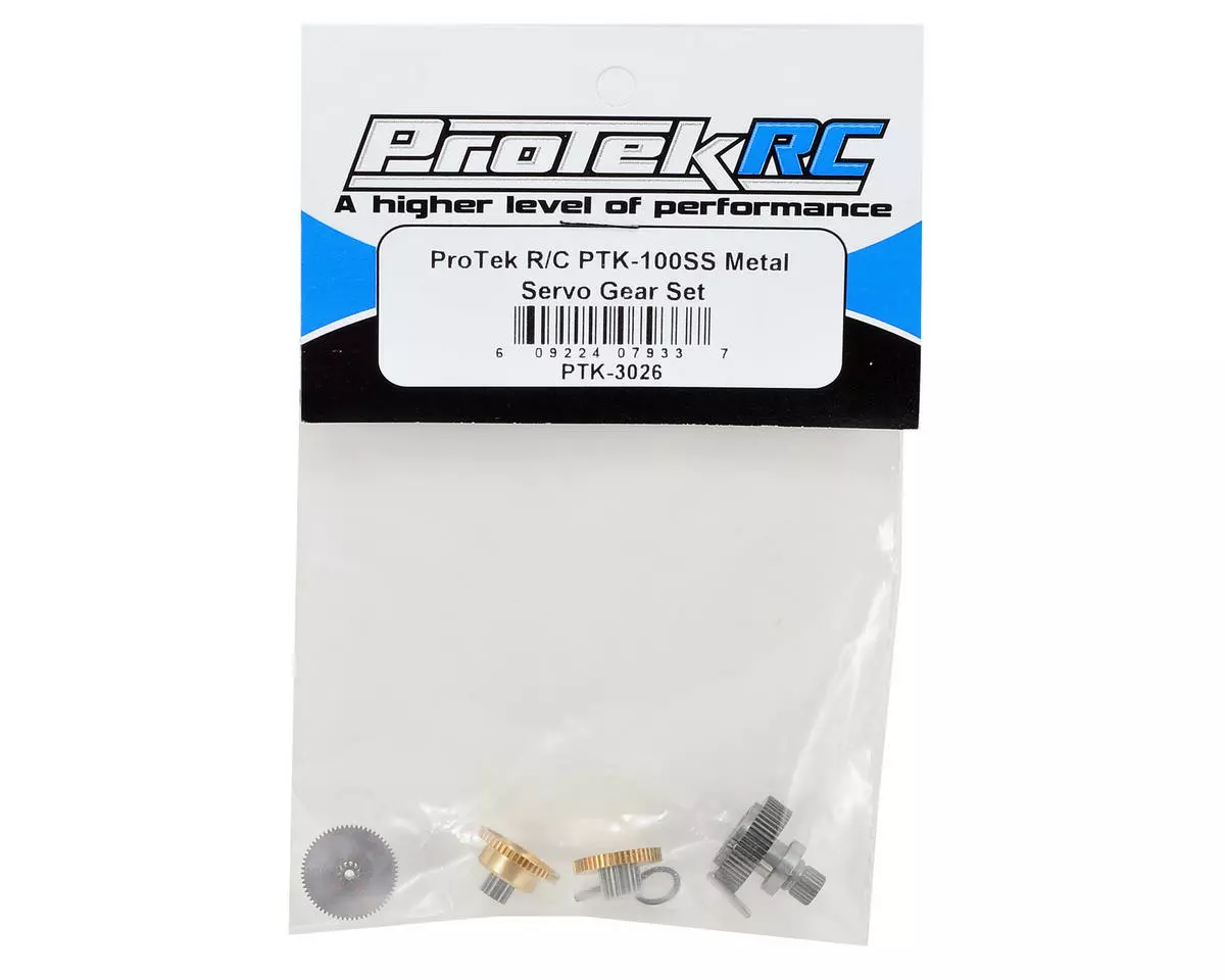 This is a replacement ProTek R/C Metal Gear Set, and is intended for use with the ProTek R/C PTK-100SS Digital Speed Metal Gear Servo. This gear set includes two installed bearings on the main output gear.Â