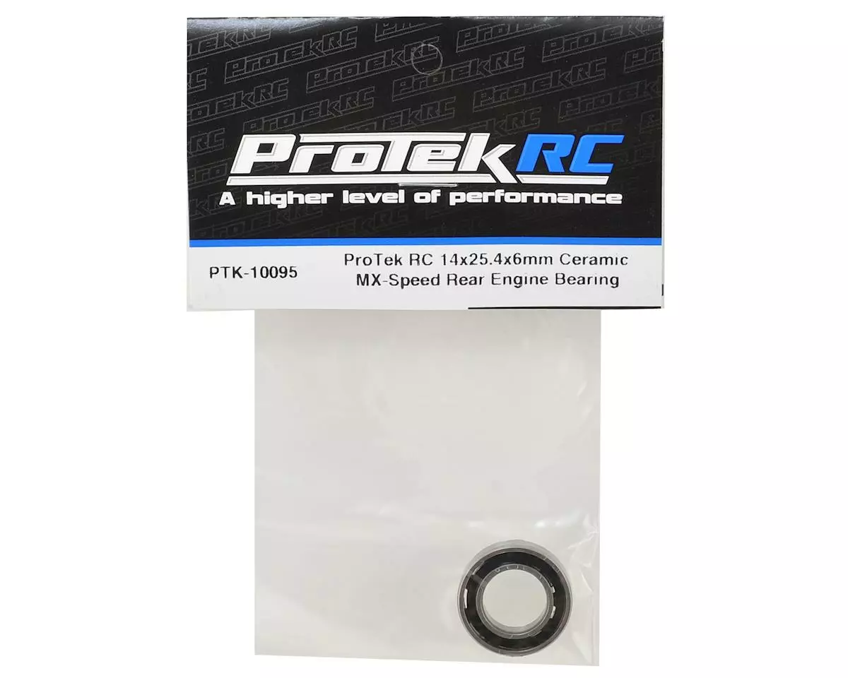 This is a Protek R/C Ceramic 14×25.4x6mm “MX-Speed” Rear Engine Bearing, and is intended for use with the O.S. VZ-B V-Spec, 30VG, the original Novarossi P5, 421B, Picco P3 .28, and Axe Rossi Cobra off-road competition engines as well as any other engine that requires a 14×25.4x6mm rear bearing.