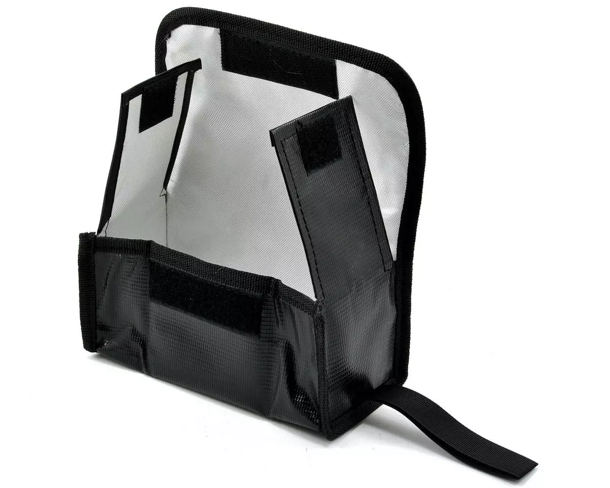 The ProTek R/C “Flak Jacket” is a conveniently sized bag that should be used when charging and storing your LiPo batteries. Its small 160x65x70mm footprint (16×6.5x7cm) will fit just about anywhere and is the perfect compliment to most 2S – 4S hardcase and softcase packs, as well as smaller flight packs. The space age materials and thick, industrial strength hook and loop fastener will help to reduce the severity of a LiPo battery fire, while the attached strap will allow you to move the battery to a safe place if a problem should occur.