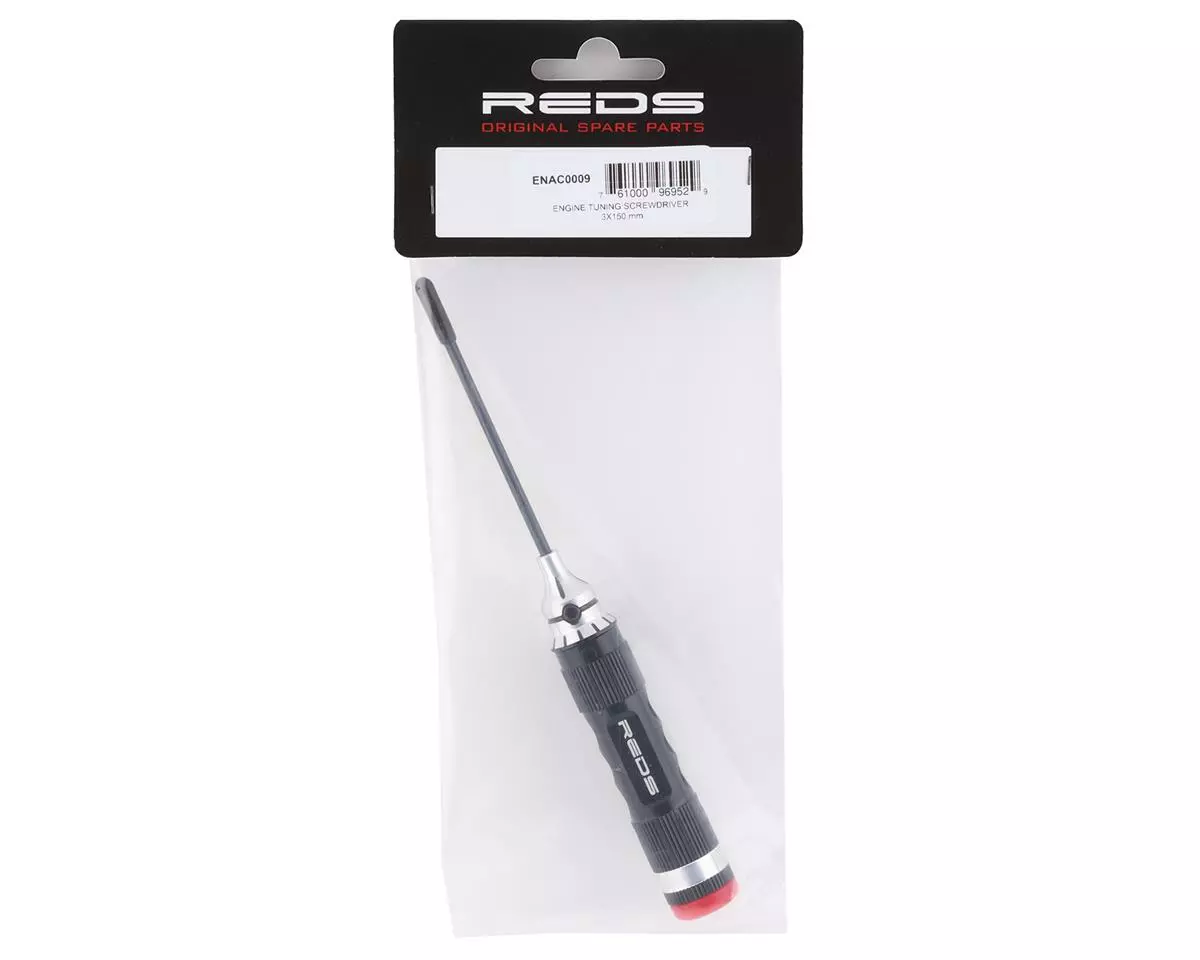 The REDS Engine Tuning Screw Driver is the perfect accessory for the nitro enthusiasts pit bag. This engine tuning screw driver is the perfect size for making fine tuned adjustments on your nitro engine. Package includes one flat head screw driver.