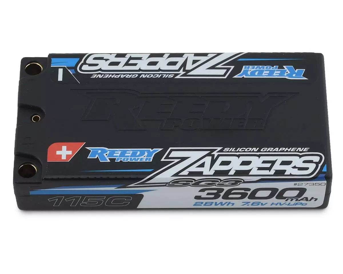 The Reedy Zappers HV SG3 2S Low Profile Shorty 115C LiPo Battery focuses an emphasis on lower internal resistance with improved durability and cycle-life. Zappers SG3 batteries feature a 7.6 nominal voltage, which means that the battery can be safely charged to 4.35V/cell. Even when the typical 8.40V (4.2V/cell) charging limit is enforced, Zappers SG3 cells perform thanks to their inherently flat discharge curve, which results in higher voltage deeper into the race.