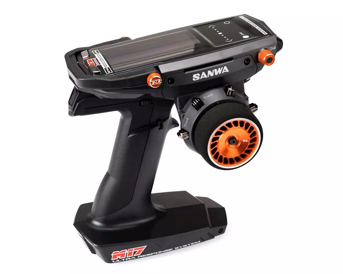 The Revolution Design Racing Products Sanwa M17/MT-44 Aluminum Steering Wheel is a quick and easy way to personalize your transmitter. Machined from high-quality aluminum, the steering wheel features a unique turbine design that greatly enhances the overall appearance of the transmitter while offering improved stability for a more precise steering feel. The steering wheel is available in a variety of colors, while machined silver color edge details and a laser-engraved logo make the wheel stand out. Combine this wheel with the RDRP Sanwa M17 Dial and Nut set (RDRP0501) for the ultimate in custom color combinations!
