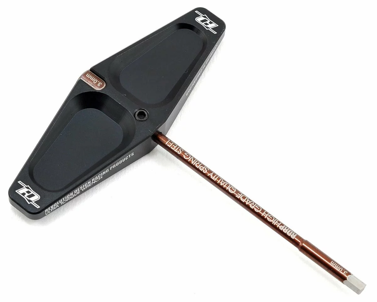 The Revolution Design Ultra Torque Wrench is constructed from Revolution Design Racing Product’s renown black anodized aluminum and high-quality spring steel to make an ultra sturdy, ultra durable tool. The compact design with a short blade and butterfly handle allow you to apply more torque on a screw – ideal for those rotted engine screws or when screwing fasteners into fiber reinforced parts. RDRP’s signature laser-etched markings on the handle the tool tip only look cool but they also help with easy identification. Choose from 2, 2.5 or 3mm sizes.