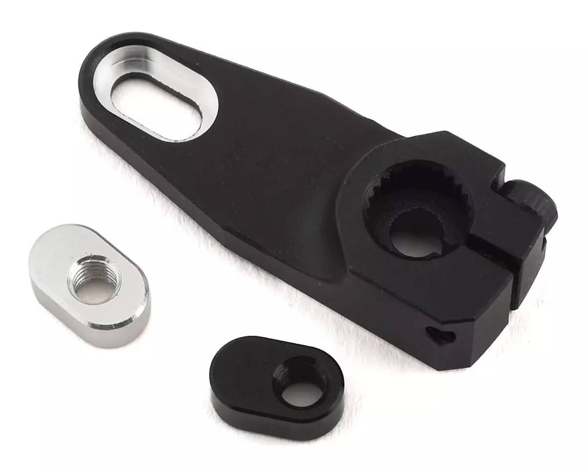 The Samix Aluminum Adjustable Servo Horn allows you to adjust the servo link mounting point on the servo horn in four increments – 17, 18, 19, and 20mm. This adjustment allows you to alter the feel and power of the steering. When mounted closer to the spline, it will create more mechanical torque. When mounted further from the spline, it will increase the speed and increase mechanical throw of the steering rack.