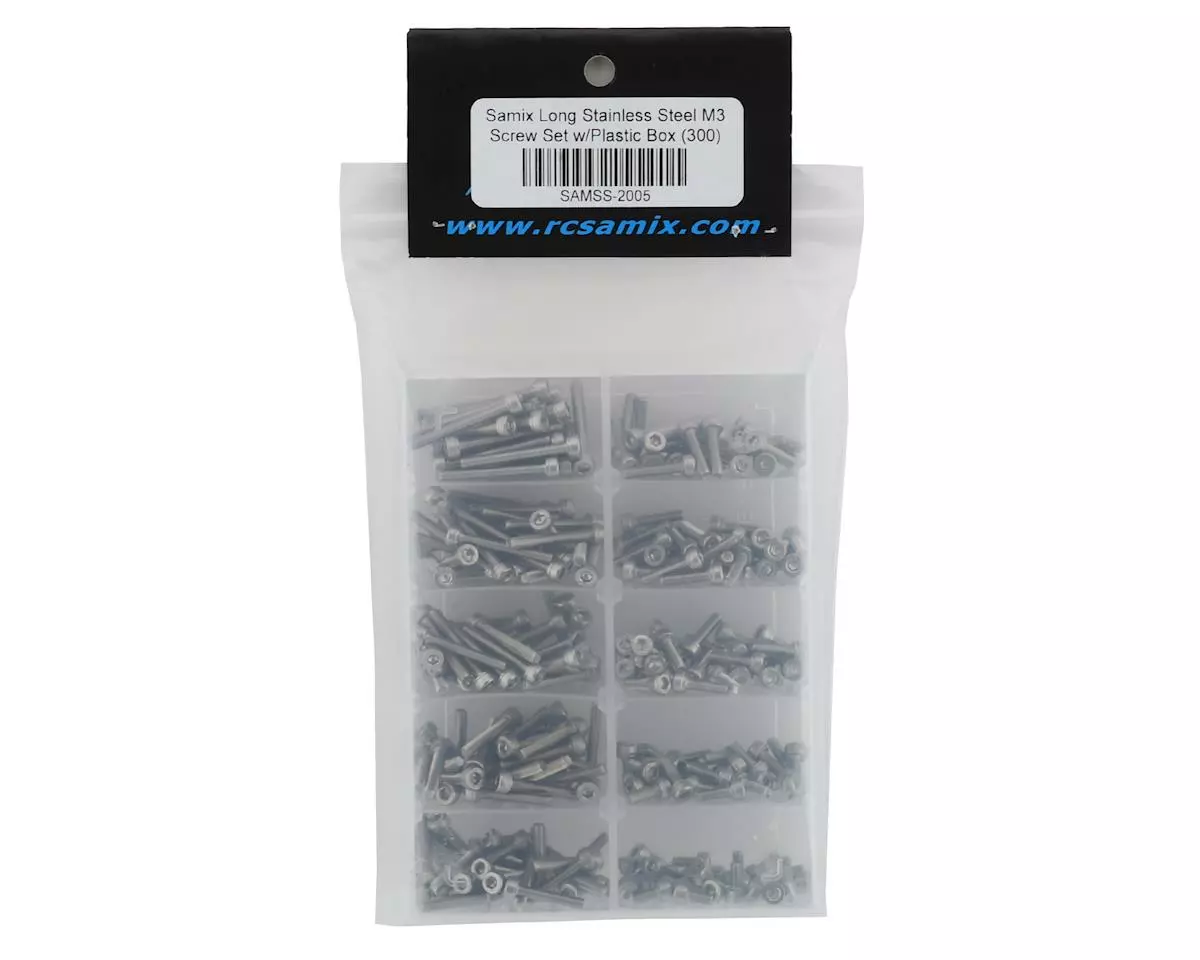 This is a Samix “Cap Head” Stainless Steel M3 Screw Set with Storage Box, a pack of three hundred M3 screws.