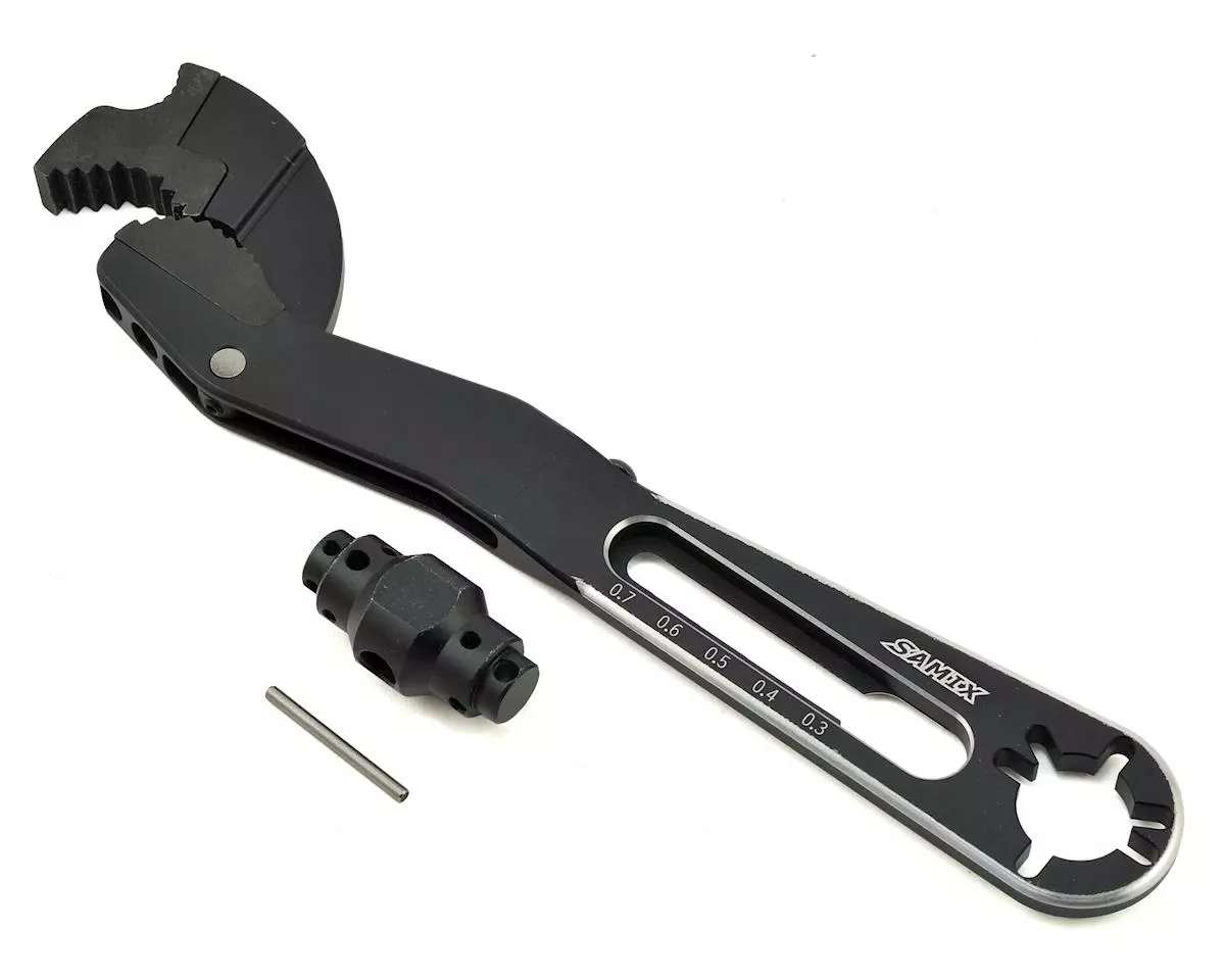 The Samix Universal On Road Clutch Tool makes it easy to assemble and remove 1/8 on road clutch bells and pinion gears. The multi-tool design features a flywheel wrench, a clutch bell shim tool and a wrench end. Machined from 7075 aluminum and hard coated for durability, this tool will make it easier to keep your clutch ready for action.