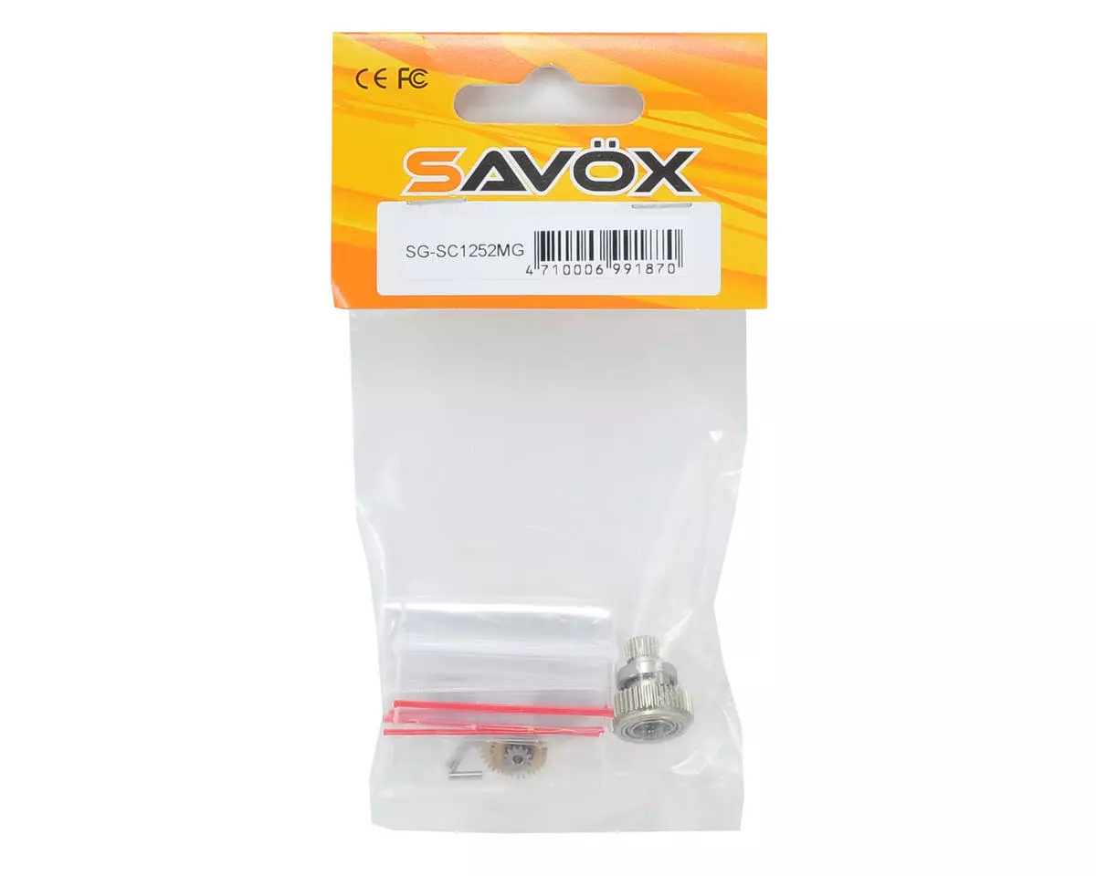 Savox SC1252MG Metal Gear Set. This gear set is a replacement for the SC1252MG servo. Package includes the gears, pins and bearings needed to replace the gear train in one servo.