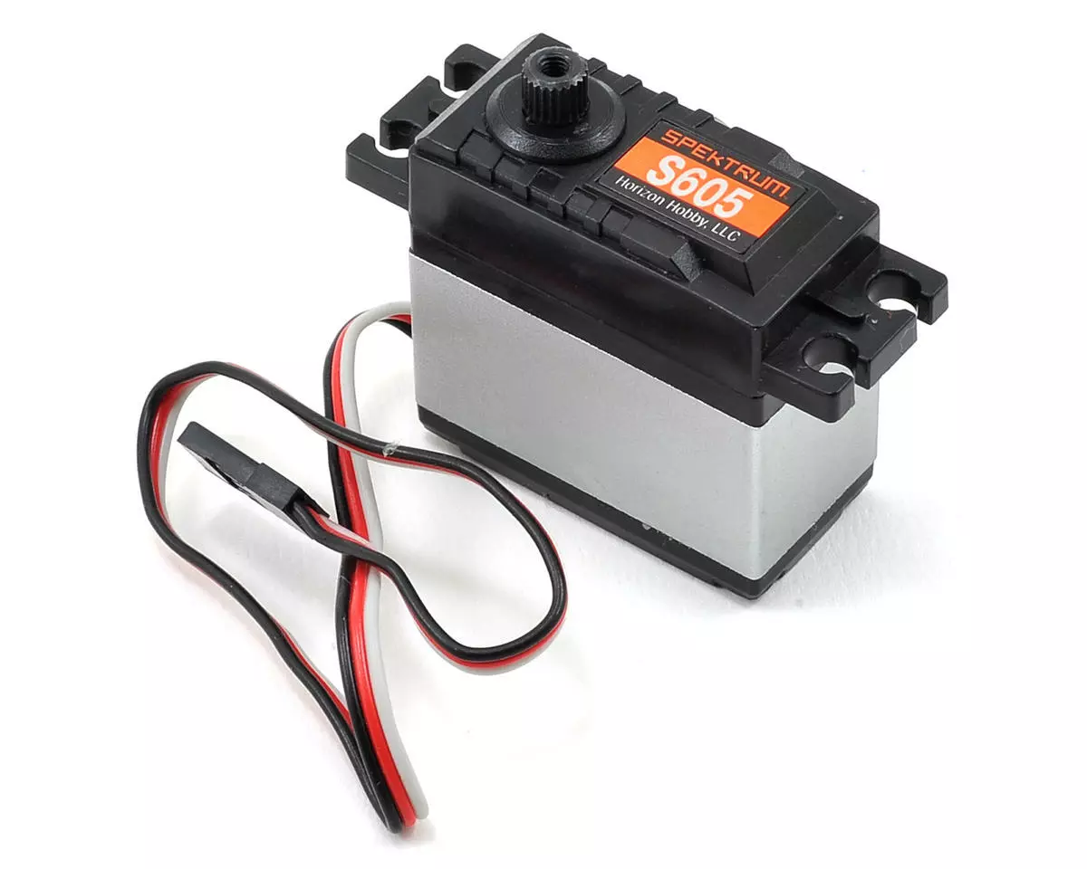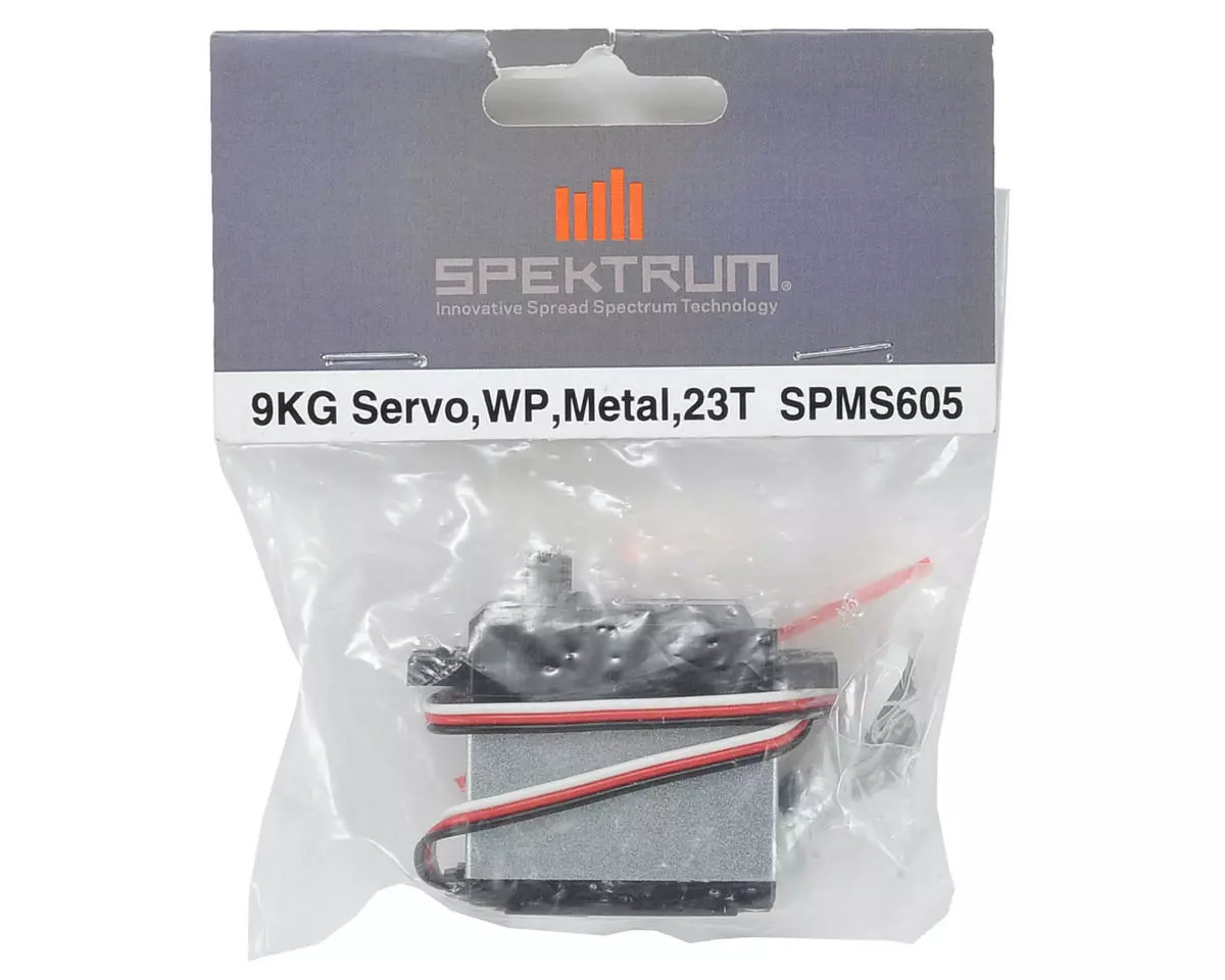 This is a Spektrum S605 Water Proof Metal Gear Servo. The S605 servo combines 9kg of torque (about 161 oz/in) with the cool feature of being waterproof. Package also includes a servo horn and mounting hardware.