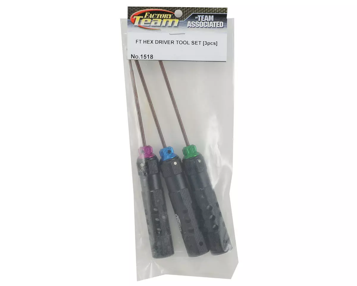 Team Associated Factory Team hex drivers feature lightweight, color-coded handles that are easy to use, and easy to identify. A wide variety of tips types and sizes allow you to handle all of the standard metric screw hardware in your car.
