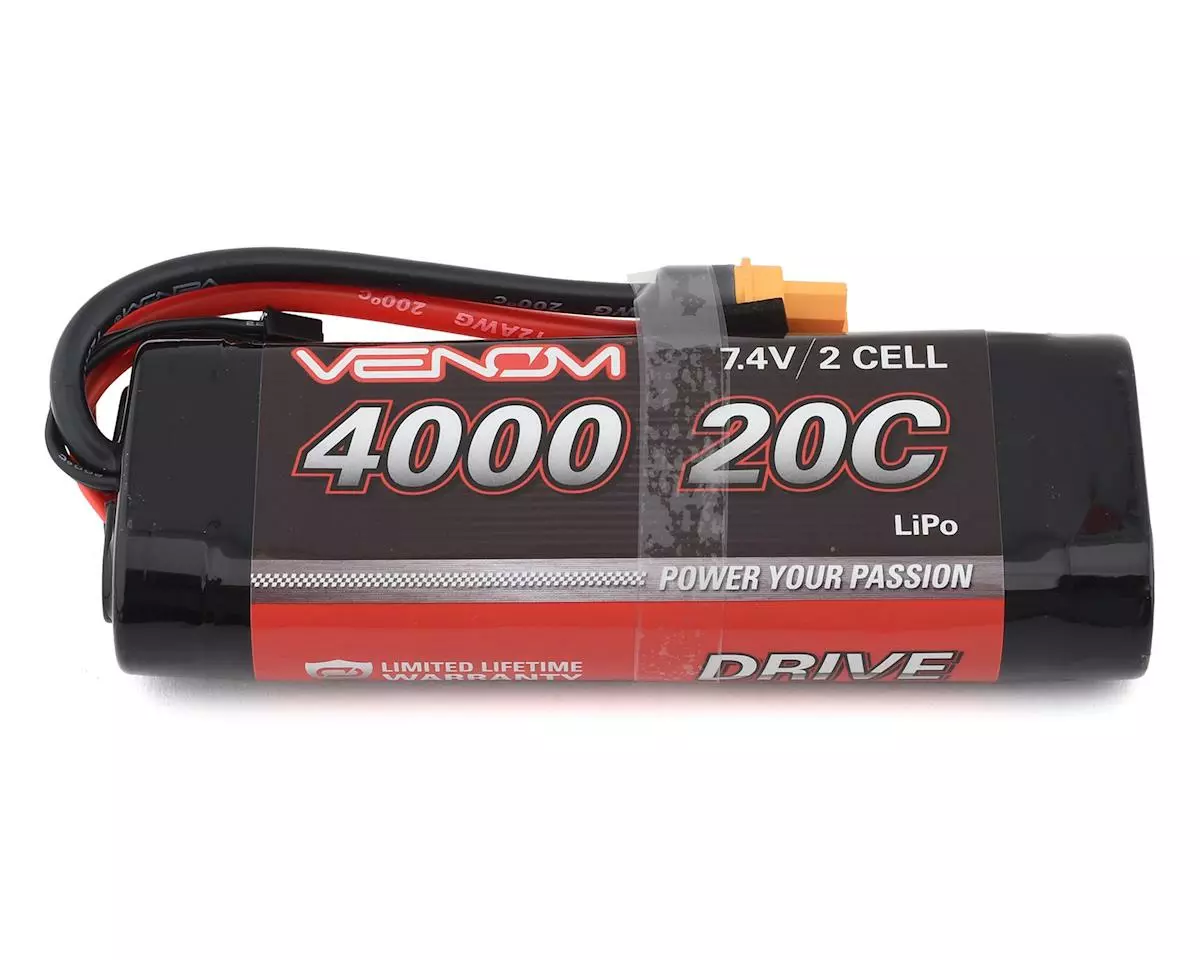 The Venom 20C 2S 4000mAh 7.4V LiPo Battery is a powerful battery you can depend on. Whether you have a short course truck, buggy, monster truck, heli, jet, airplane or quad, this battery pack delivers the results and run-time you have come to expect from all Venom batteries.